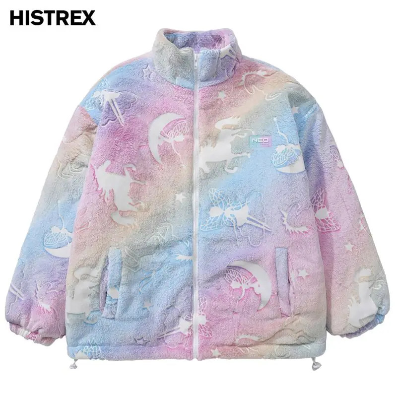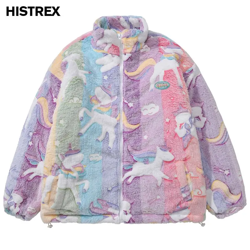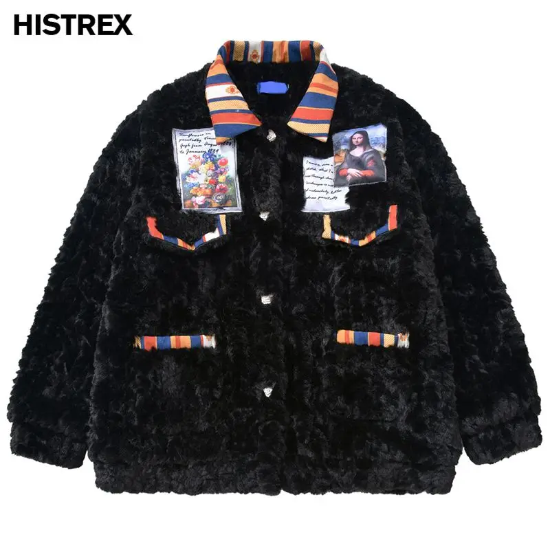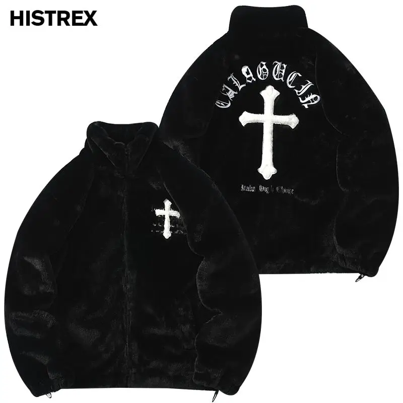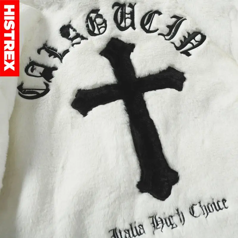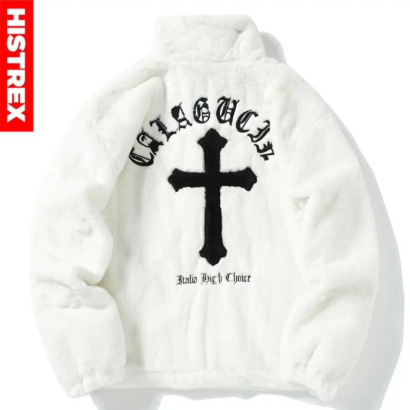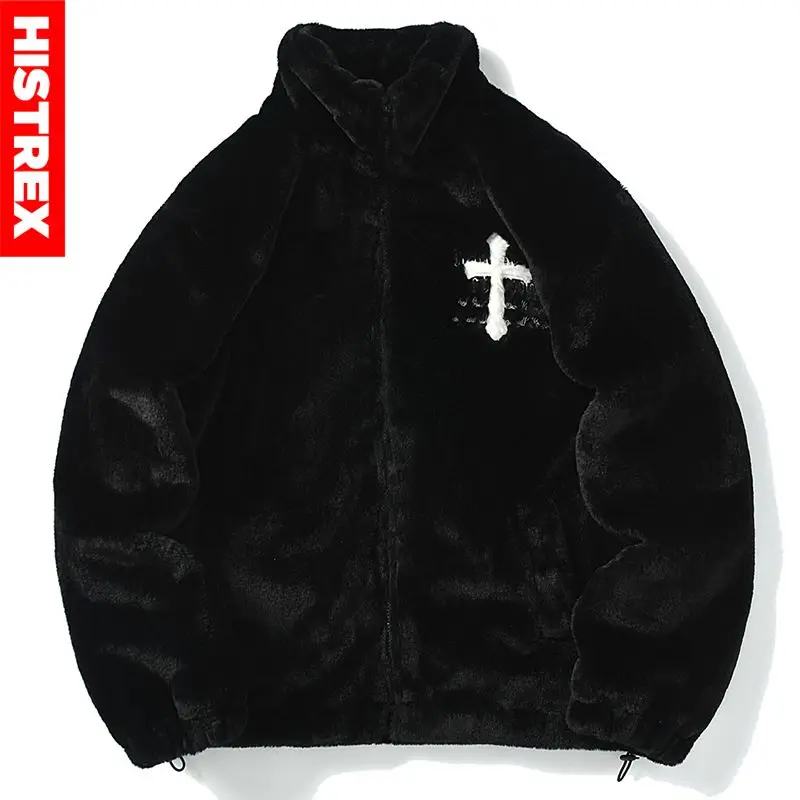 HISTREX -Parkas veste en fourrure de lapin pour hommes, manteau moelleux Hip Hop, pardessus en polaire d'hiver, Streetwear Harajuku, vêtements coréens Y2k