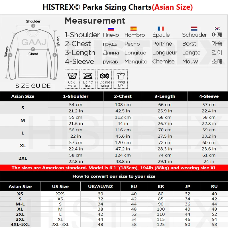 Tableaux des tailles de parka HISTREX