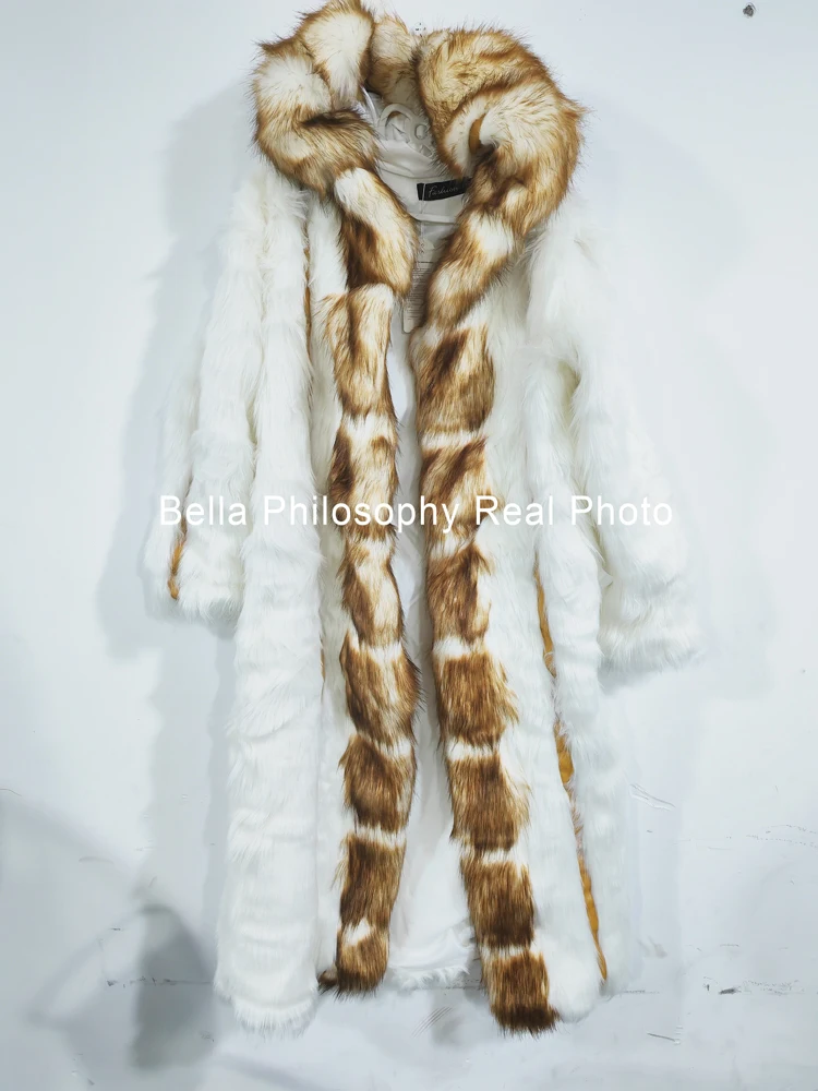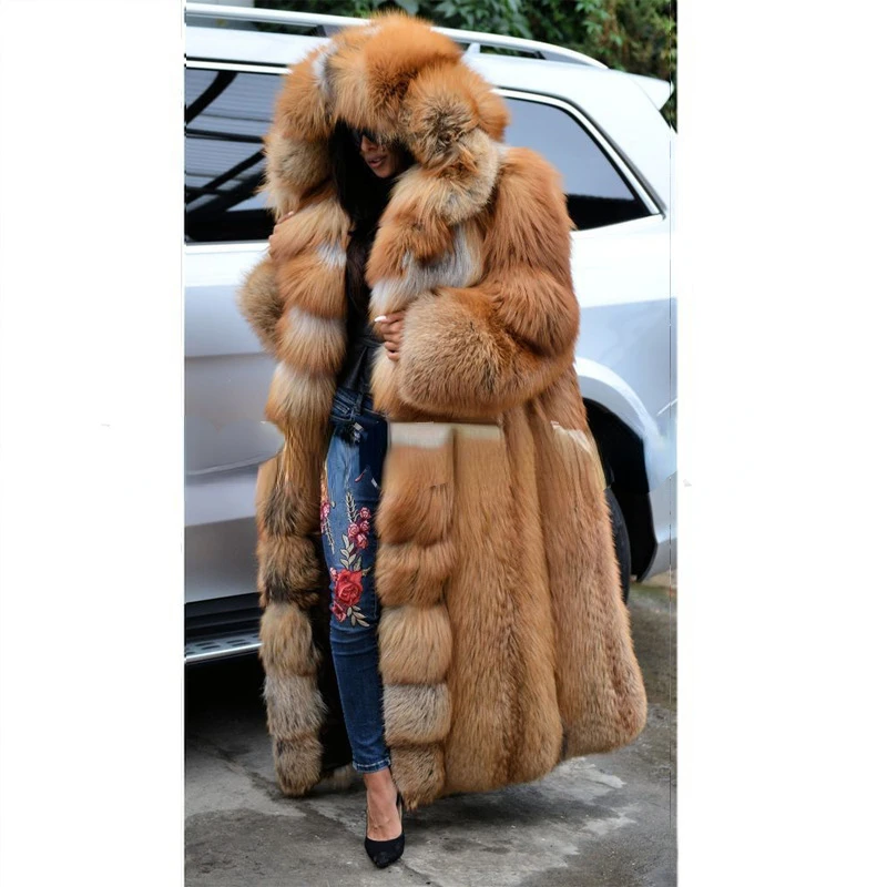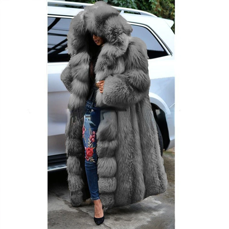 Hiver grande taille plus longue fausse fourrure manteau chaud à manches longues manteau fourrure de renard fausse fourrure manteau femmes longue à capuche fourrure tout-en-un manteau de fourrure