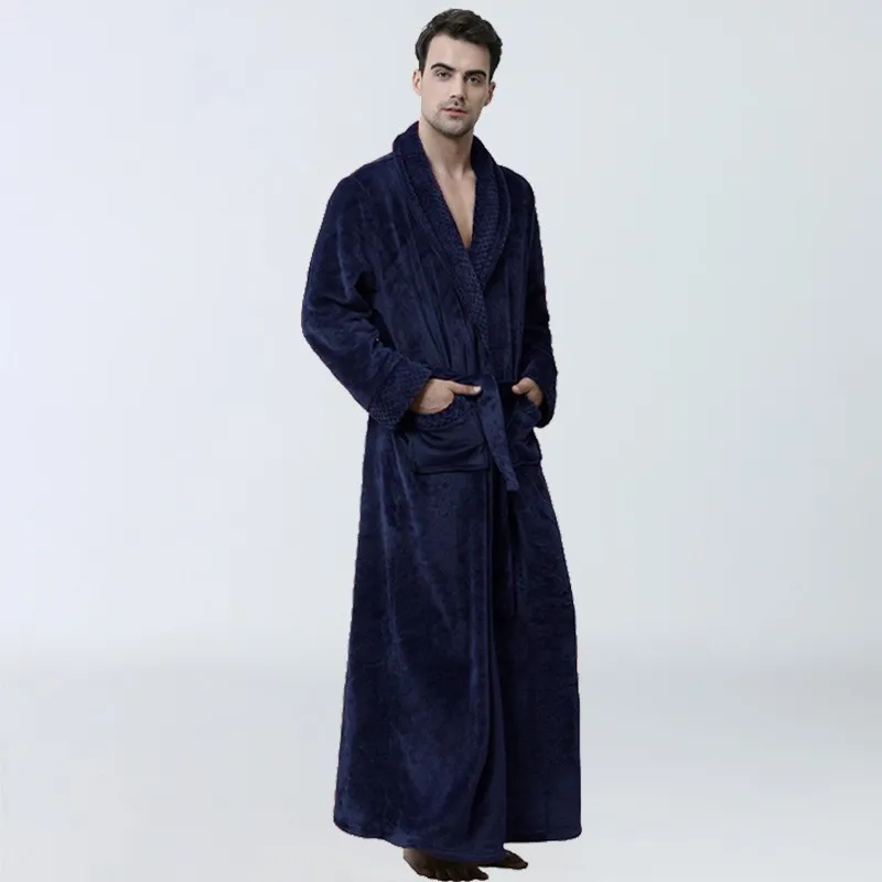 Hiver hommes Robe longue vêtements de nuit épais vêtements de nuit en flanelle Kimono peignoir Robe chaud corail polaire Homewear ample décontracté salon porter