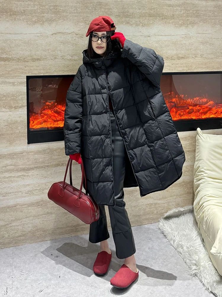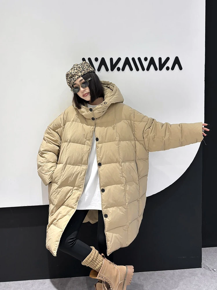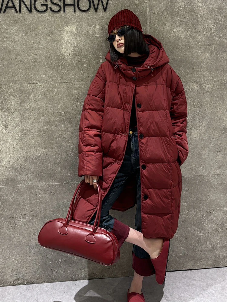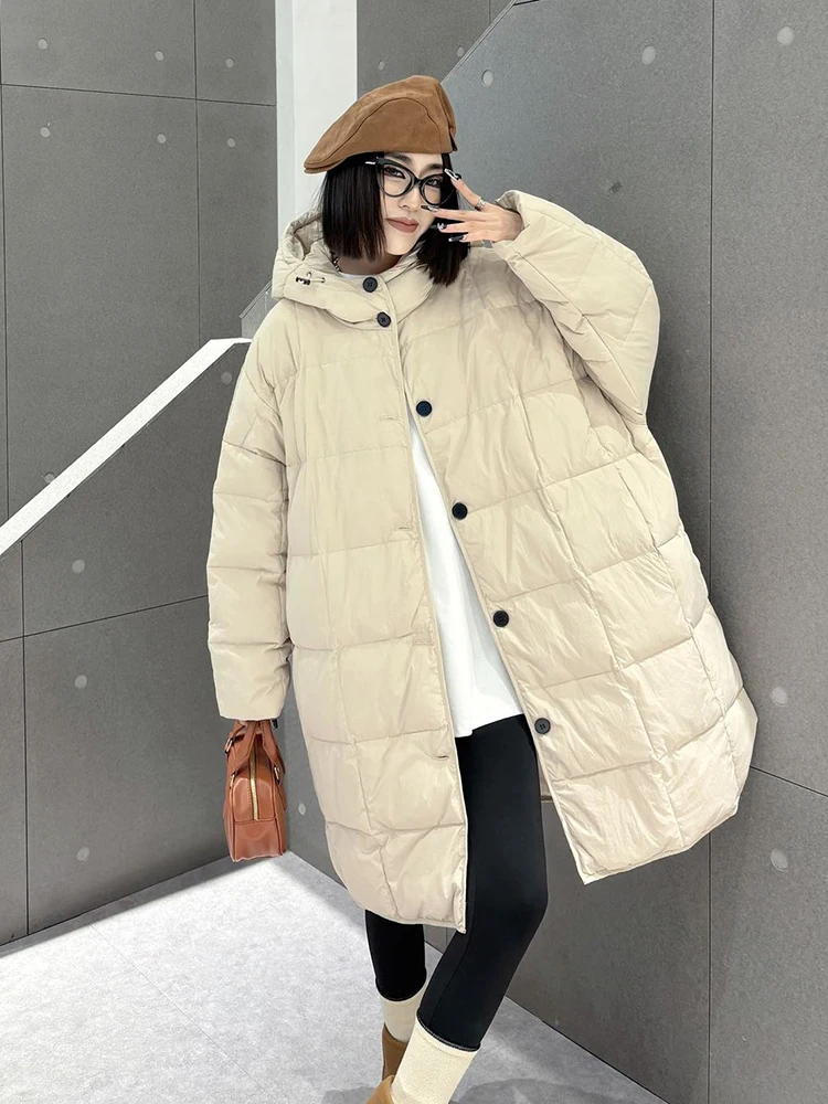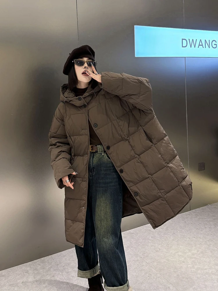 Hiver longue solide ample à capuche doudoune femme simple boutonnage Parker outwear femmes blanc canard vers le bas épais décontracté doudoune