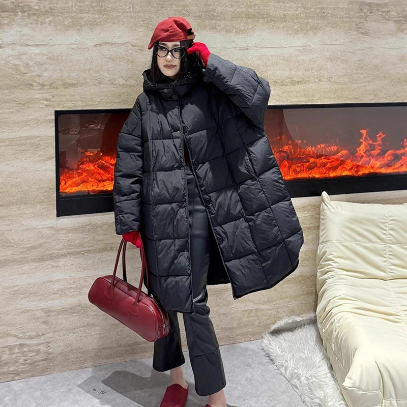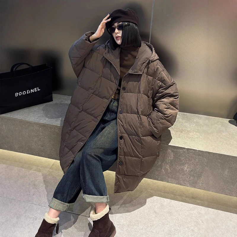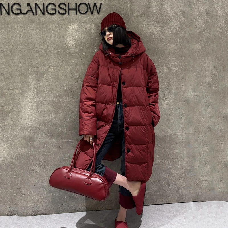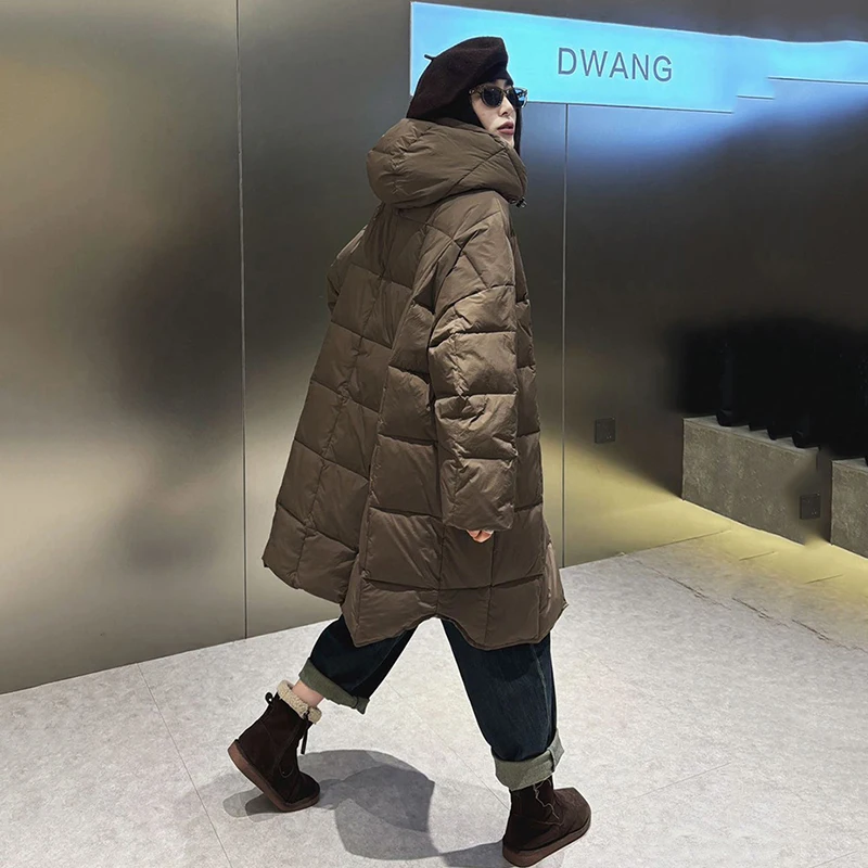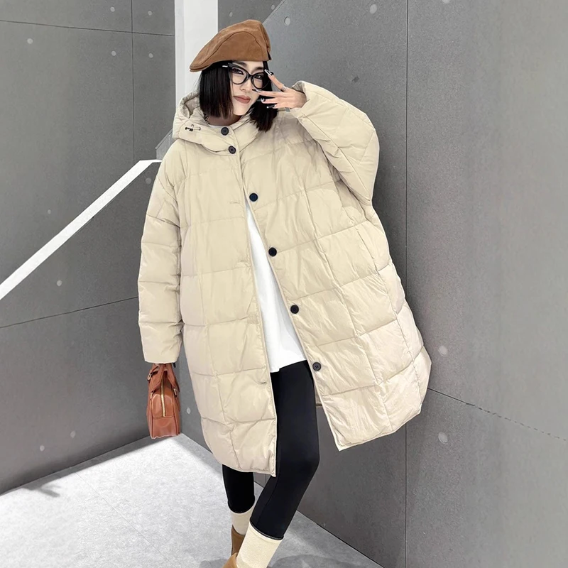 Hiver longue solide ample à capuche doudoune femme simple boutonnage Parker outwear femmes blanc canard vers le bas épais décontracté doudoune