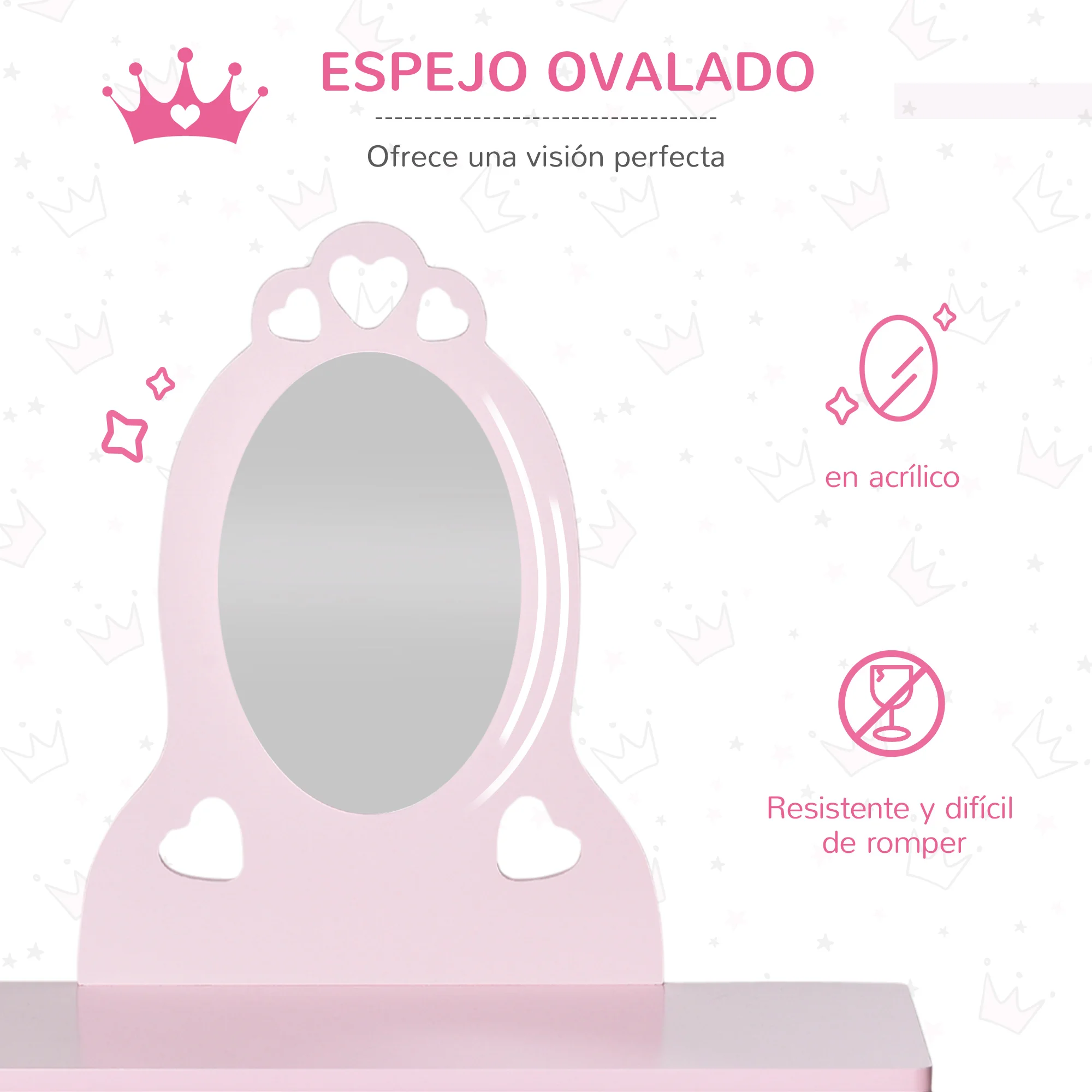Il existe de nombreux enfants qui aiment jouer en imitant les adultes.Et ce centre de beauté de style princesse est parfait!Il a une jolie vanité rose, un tabouret et un miroir avec des découpes en forme de cœur.Les pieds courbés ajoutent une touche belle et élégante à l'ensemble.De plus, il dispose d'un tiroir pour avoir toujours des accessoires à portée de main et organisés.Ils peuvent se maquiller, réaliser de jolies coiffures, peindre leurs ongles et bien plus encore.Ils vont l'adorer!