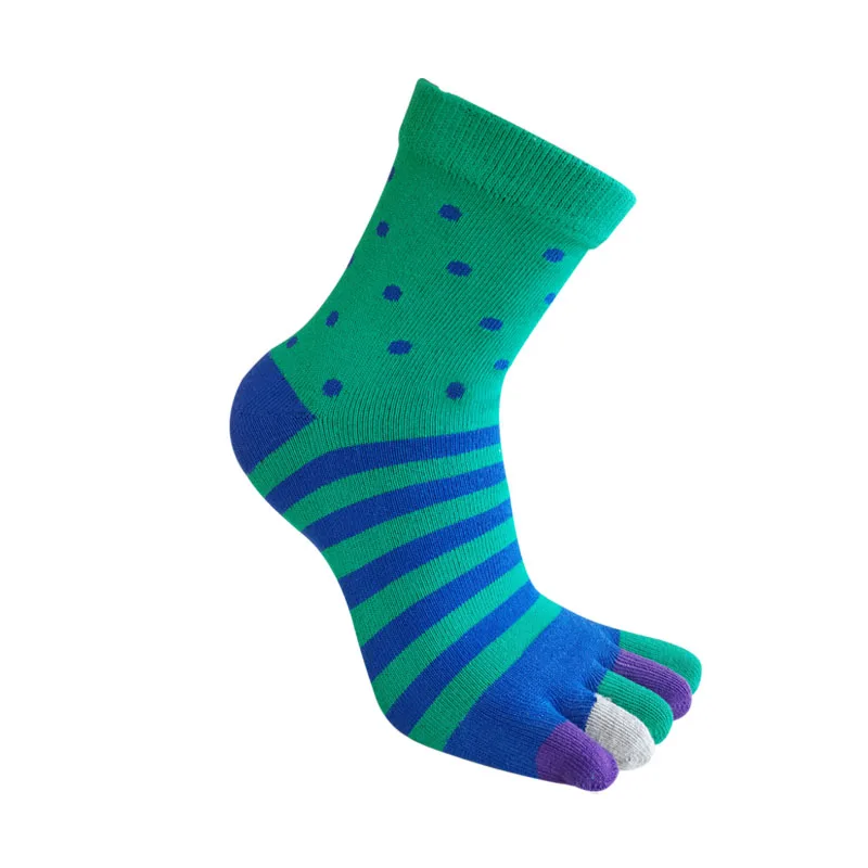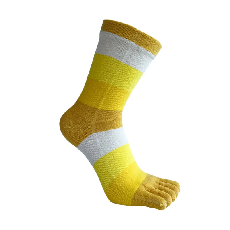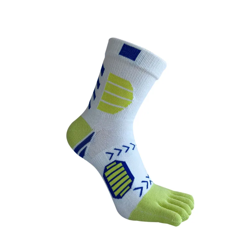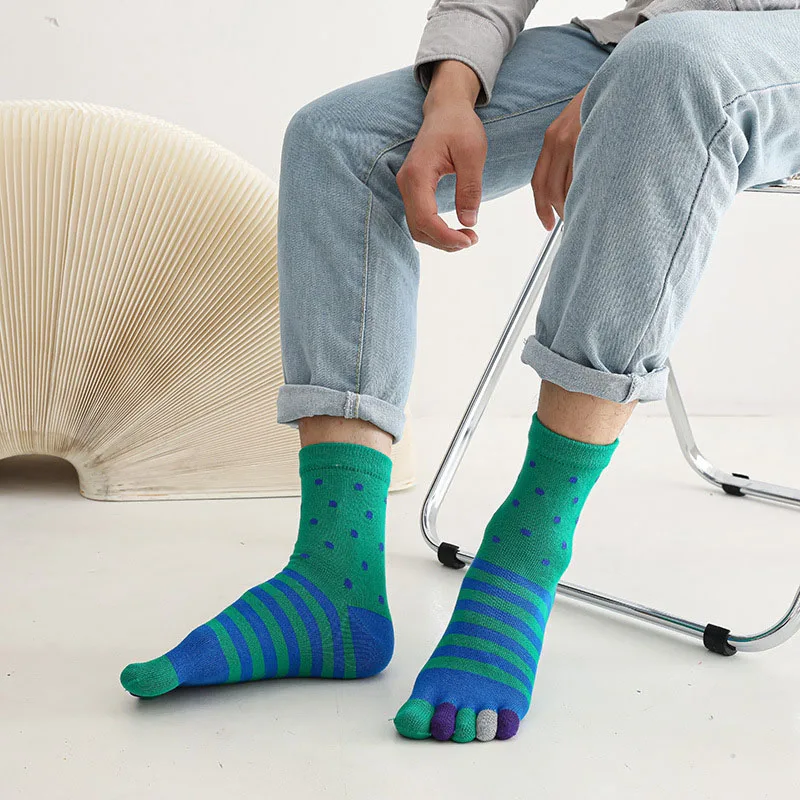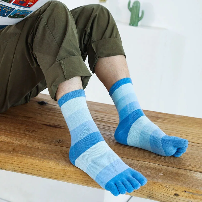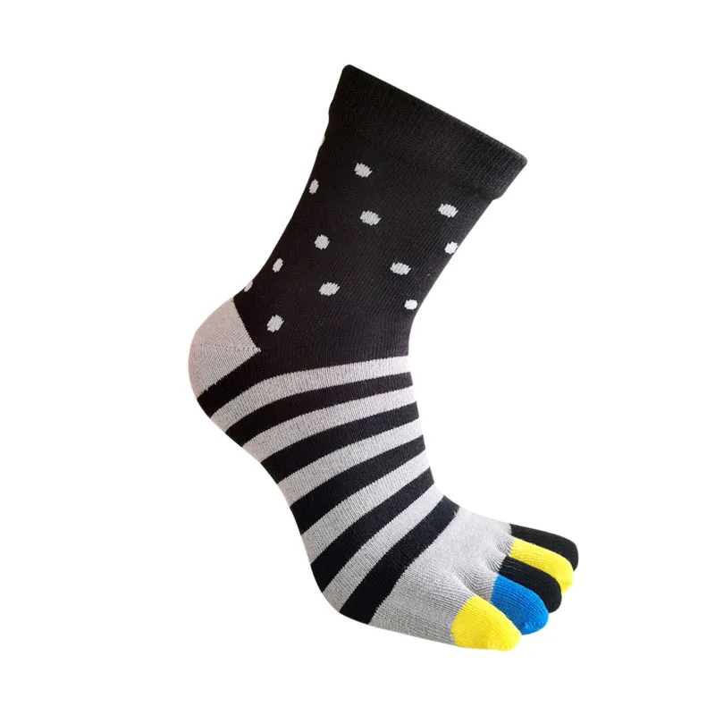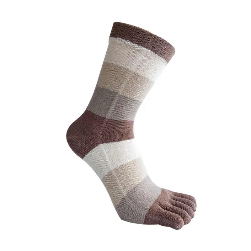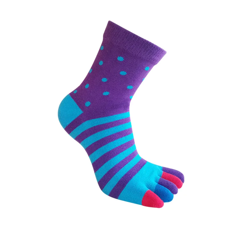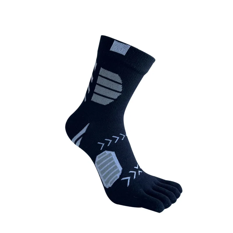 Les chaussettes à cinq doigts séparent les orteils, ce qui peut maintenir la ventilation et la sécheresse entre les orteils, réduire la croissance des bactéries et des champignons et réduire l'incidence de problèmes de pieds tels que l'odeur des pieds et des pieds d'athlète. En même temps, il permet à chaque orteil de bouger librement, aussi confortable que pieds nus, aidant à favoriser la circulation sanguine dans les pieds et à soulager la fatigue du pied.