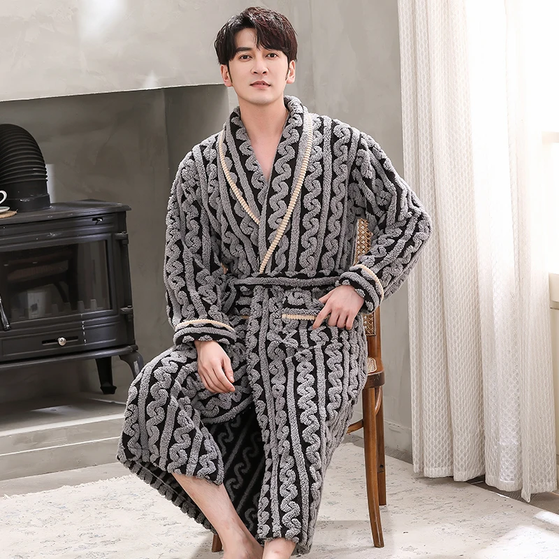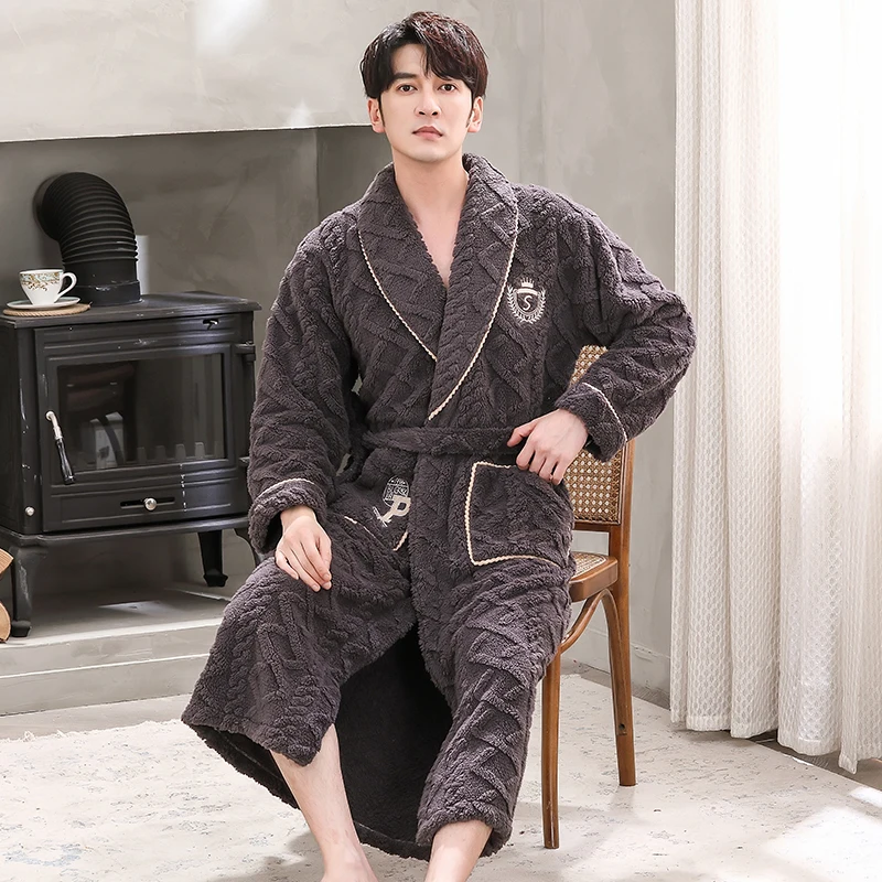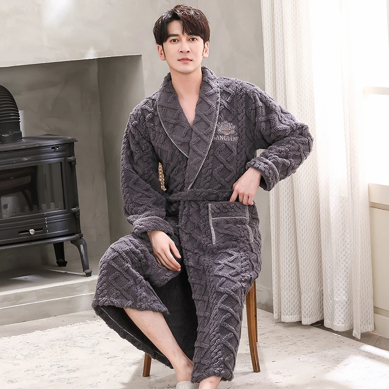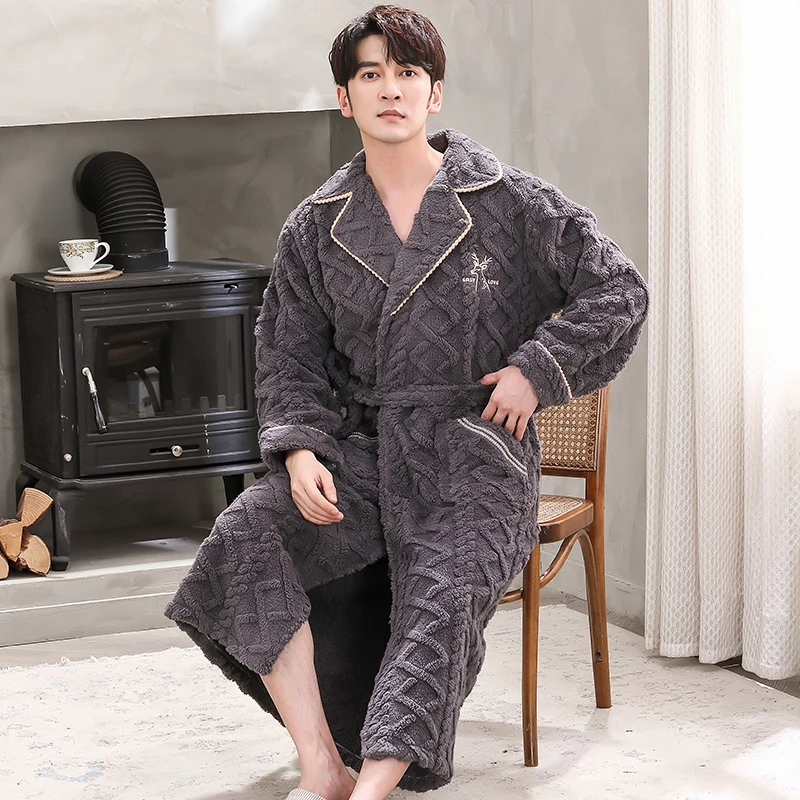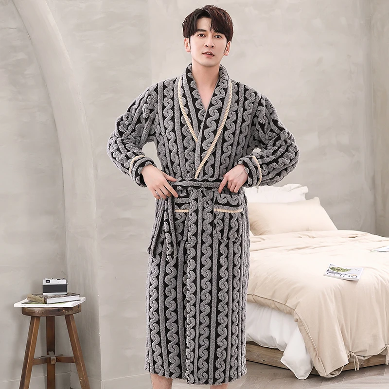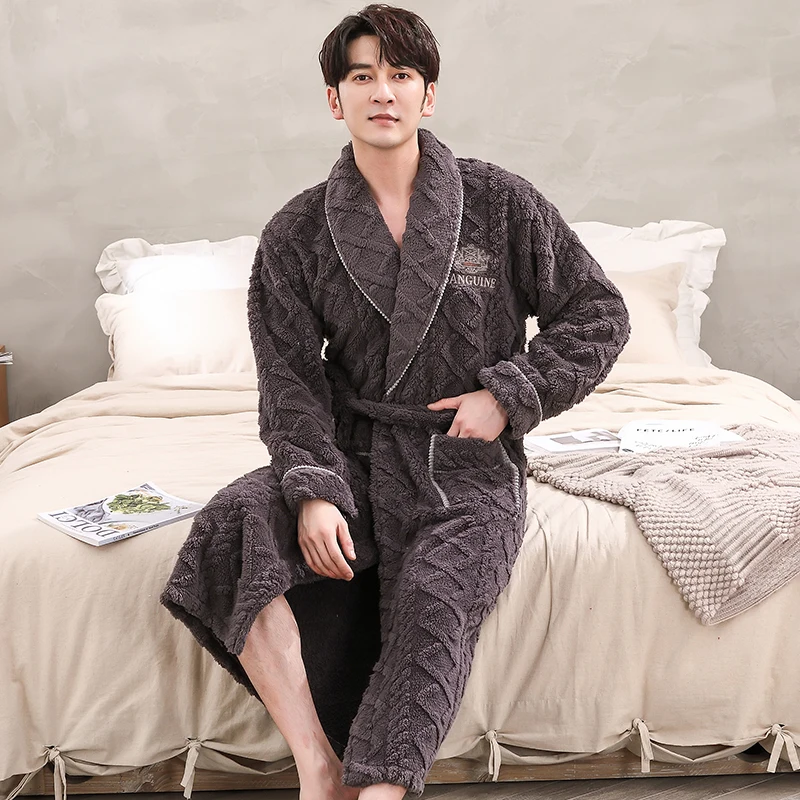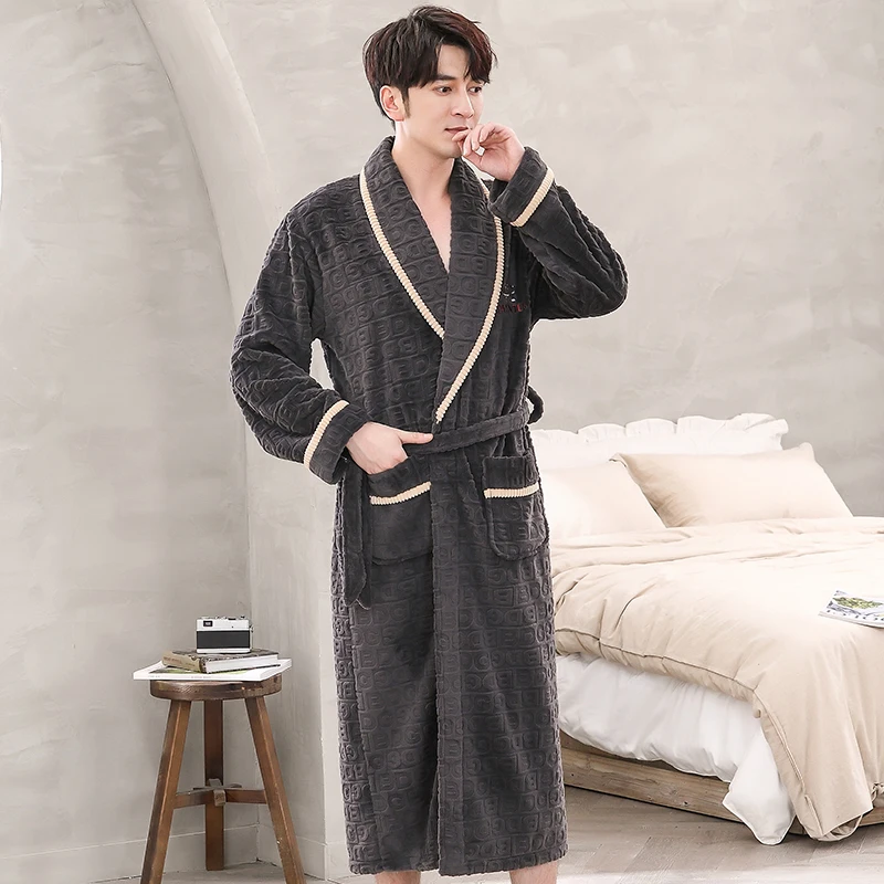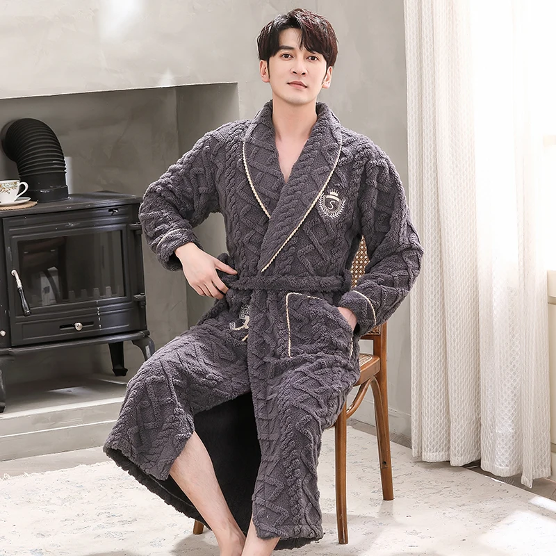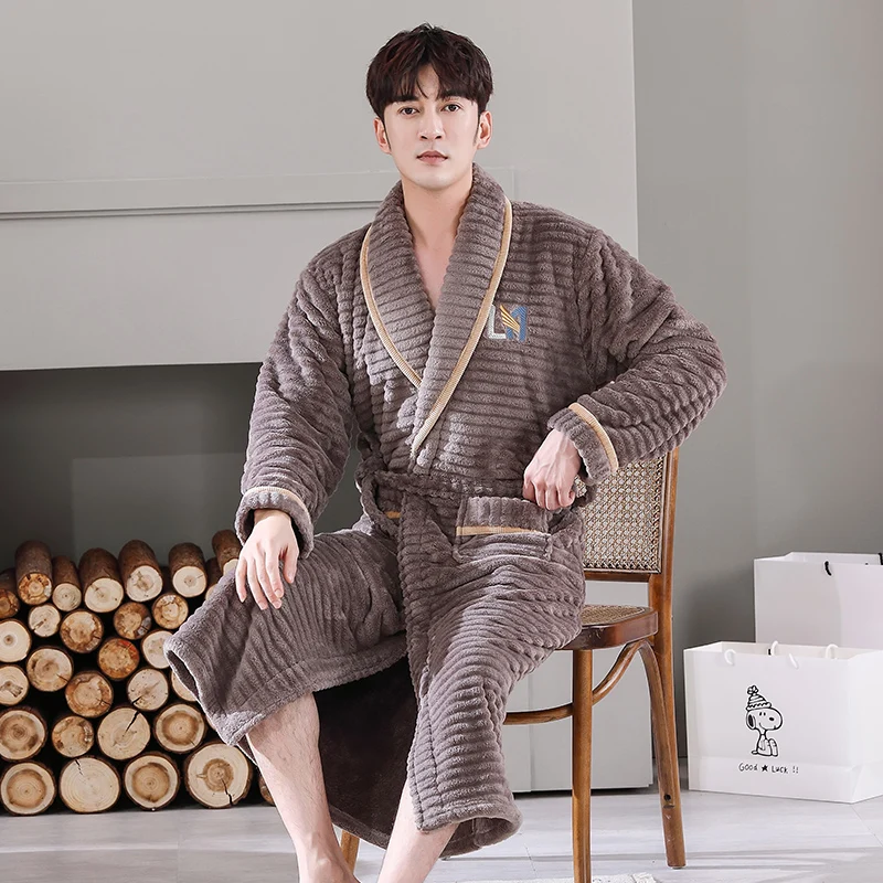 Hommes vêtements de nuit Robe hiver flanelle épaissir Terry Robe mâle à manches longues Kimono chaud Peignoir vêtements de maison Peignoir hommes Robe