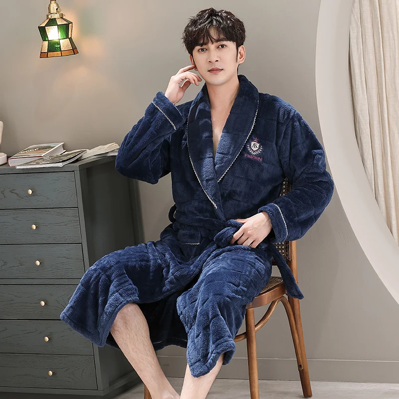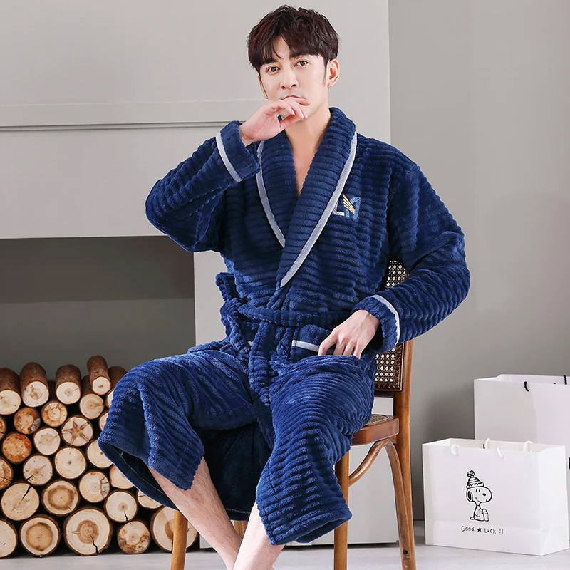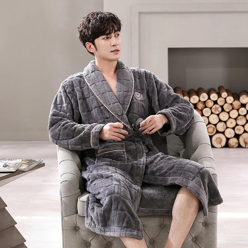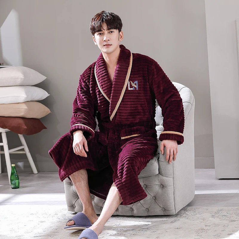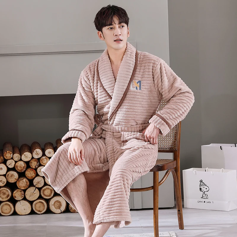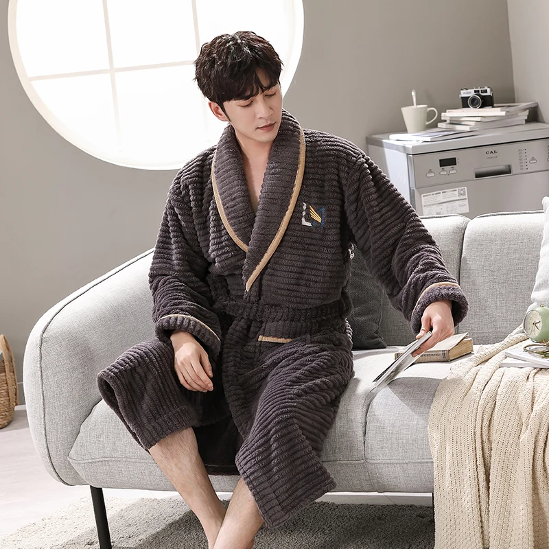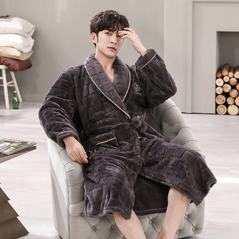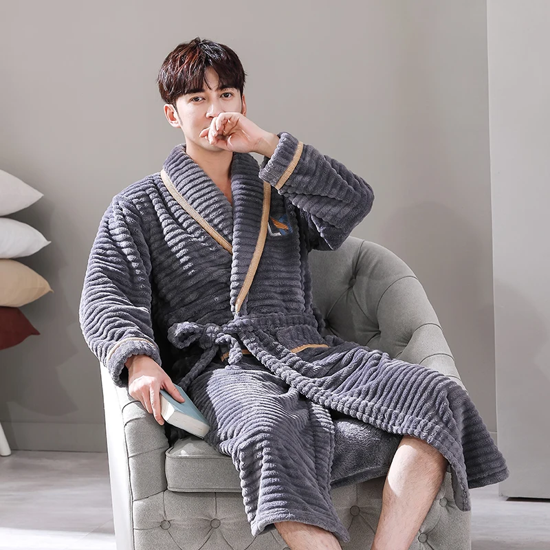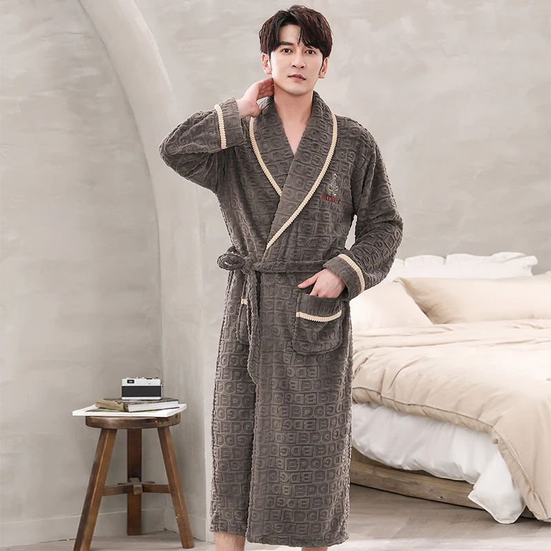 Hommes vêtements de nuit Robe hiver flanelle épaissir Terry Robe mâle à manches longues Kimono chaud Peignoir vêtements de maison Peignoir hommes Robe