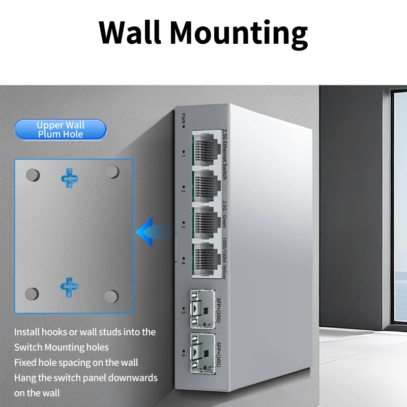 HORACO 2.5Gb Switch 2.5GBASE-T 4 ports 2.5G RJ45 avec 2 ports 10G SFP + Switch réseau Plug and Play non géré sans ventilateur