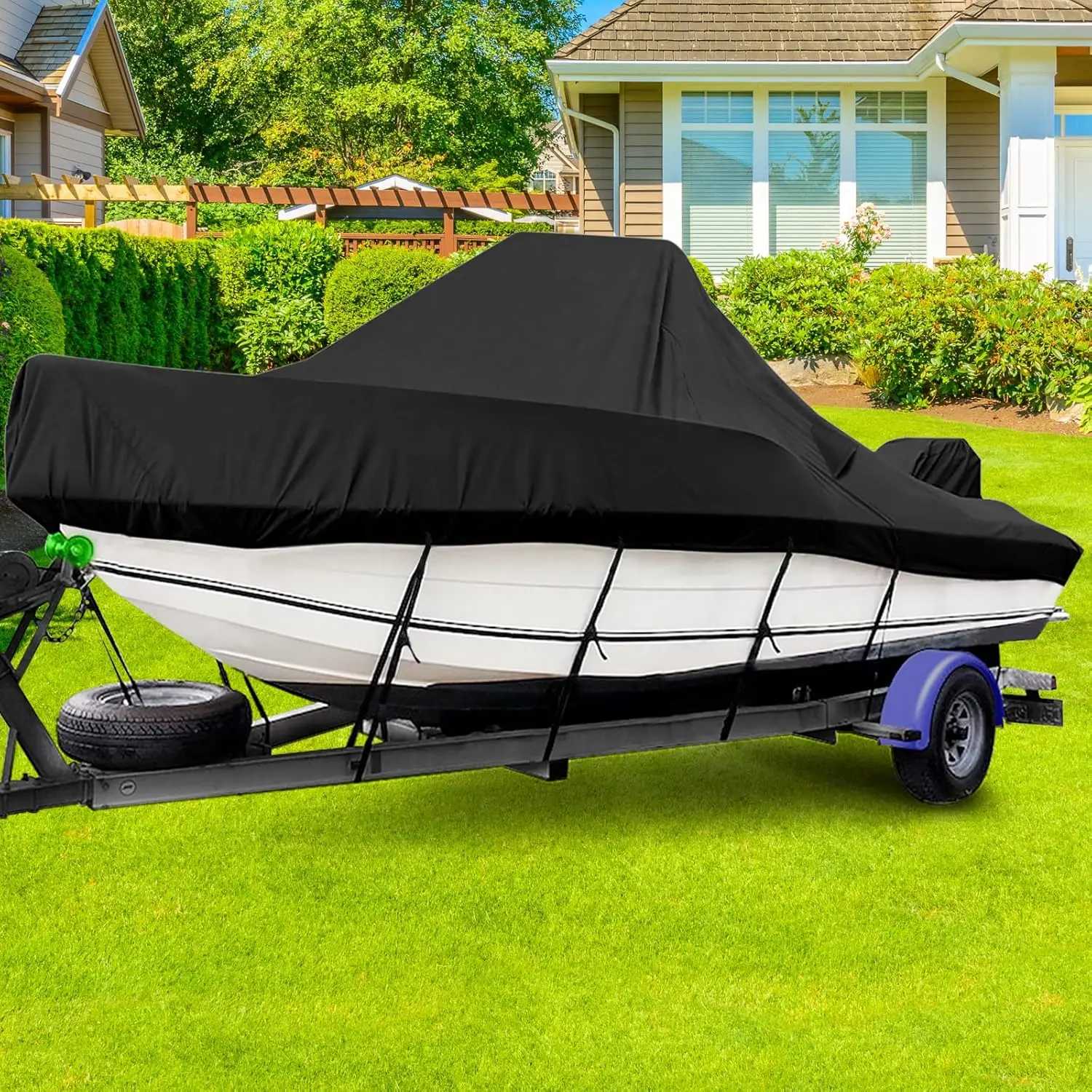 Housse de bateau imperméable : le tissu robuste offre une meilleure imperméabilité et les coutures chevauchantes à double aiguille ajoutent des bandes imperméables pour améliorer la protection imperméable.