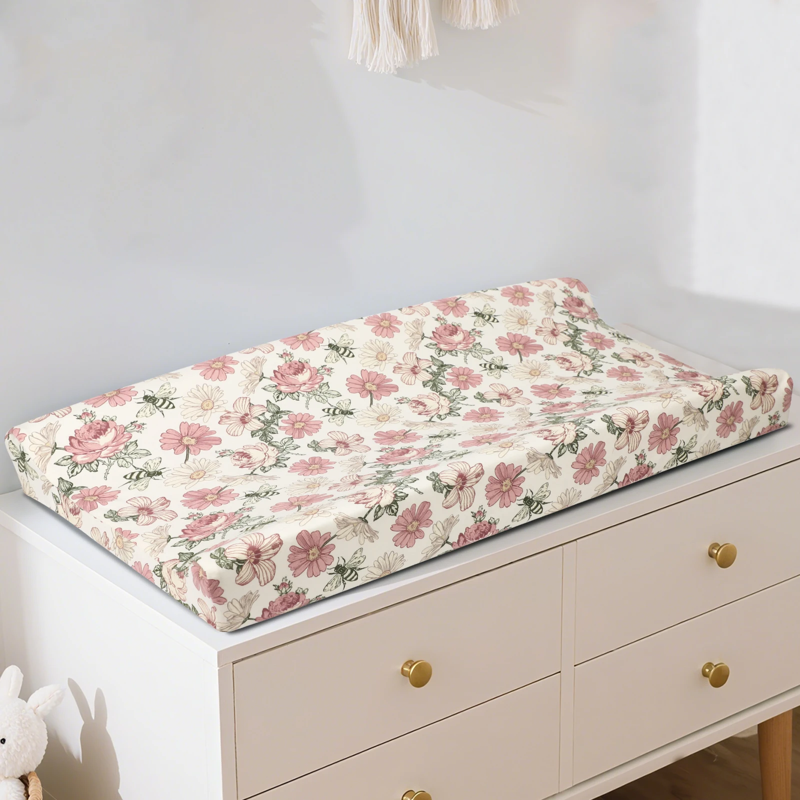 Housse de matelas à langer réutilisable en pur coton, avec imprimé de dessin animé, couche extérieure détachable et lavable pour couche de bébé, coussin doux