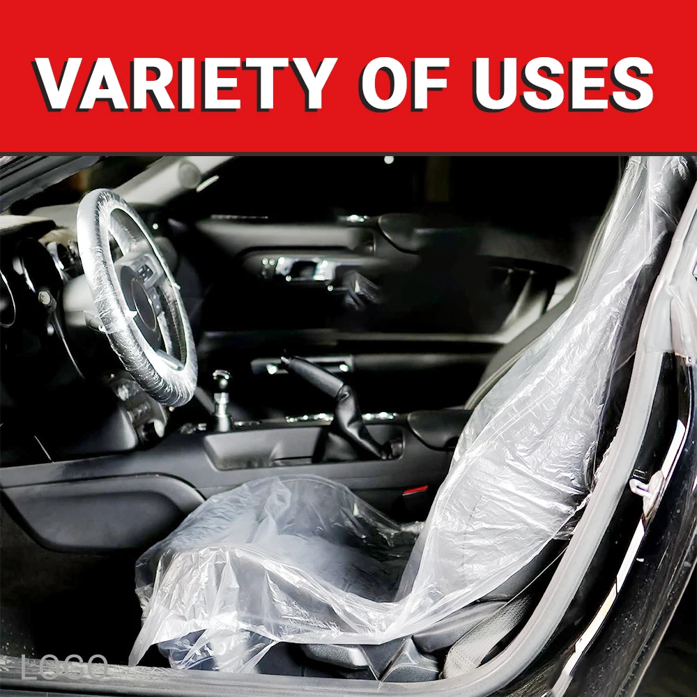 Housses de siège de voiture jetables, protecteur en plastique transparent comprenant des housses de roue, des housses de sélecteur de vitesse et une housse de frein à main