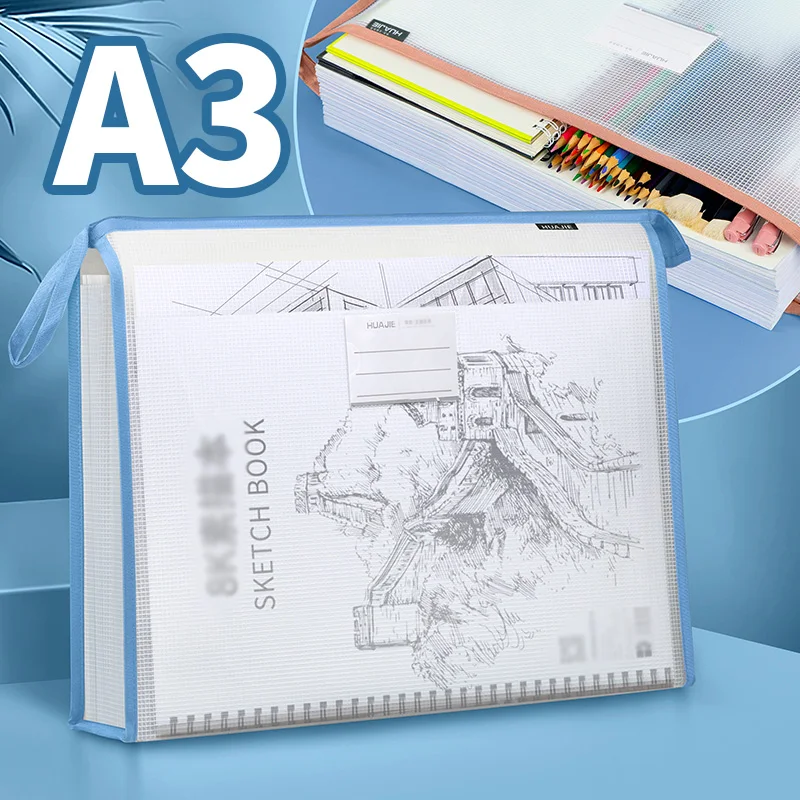 Huajie 1 pièces sac à fermeture éclair A3 en maille stéréo en matériau Eva épaissi, sac à main d'organisation et de stockage de tirage en papier de peinture de très grande capacité, utilisé pour la classification et le stockage des fichiers, peut être utilisé pour un usage habituel