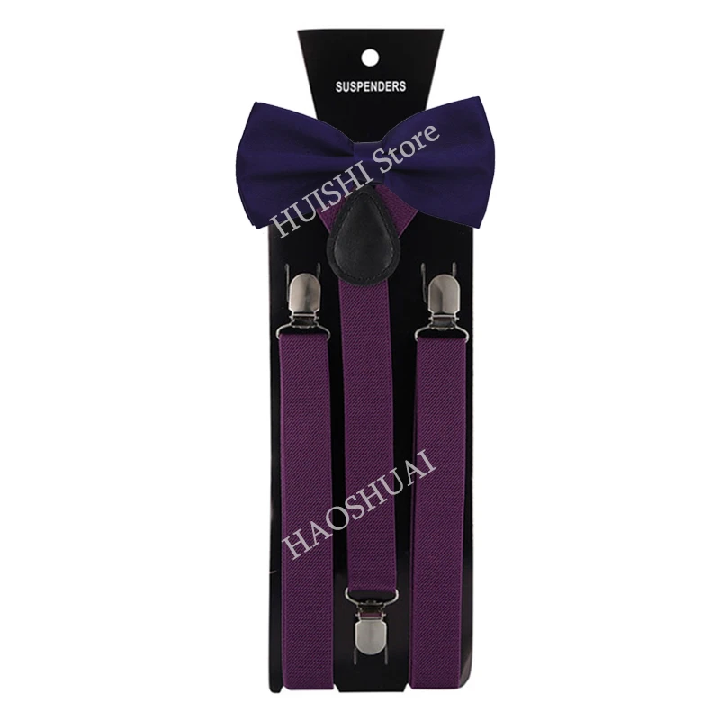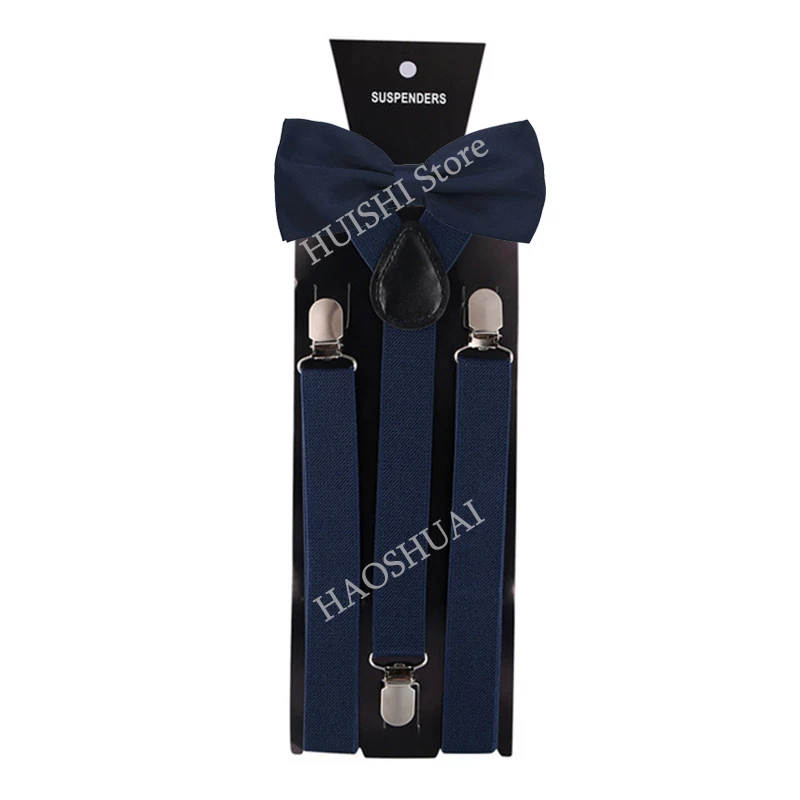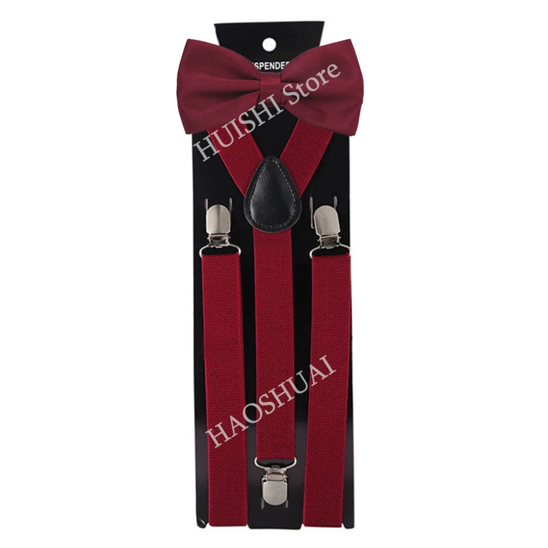 HUISHI mode plaine noir bretelles pour hommes bleu marine rouge bordeaux bretelles unisexe sangle Bretels Mannen femmes noeud papillon bretelles bleu