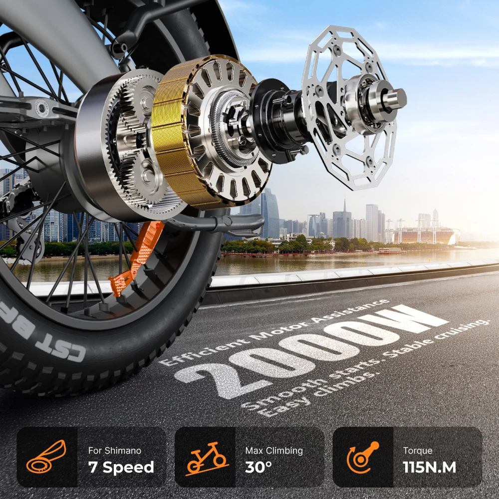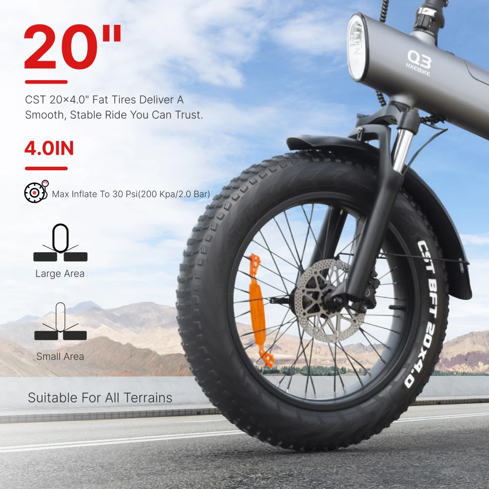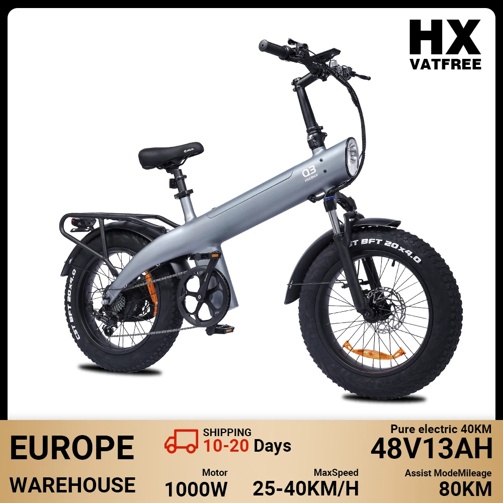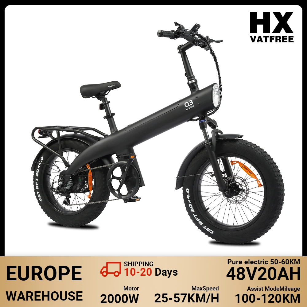 Vélo électrique pour adultes HX Q3 2000W 48V 20AH, vélo électrique 115N.m, vélo électrique à gros pneus 20 pouces, batterie amovible, vélo électrique pliable
