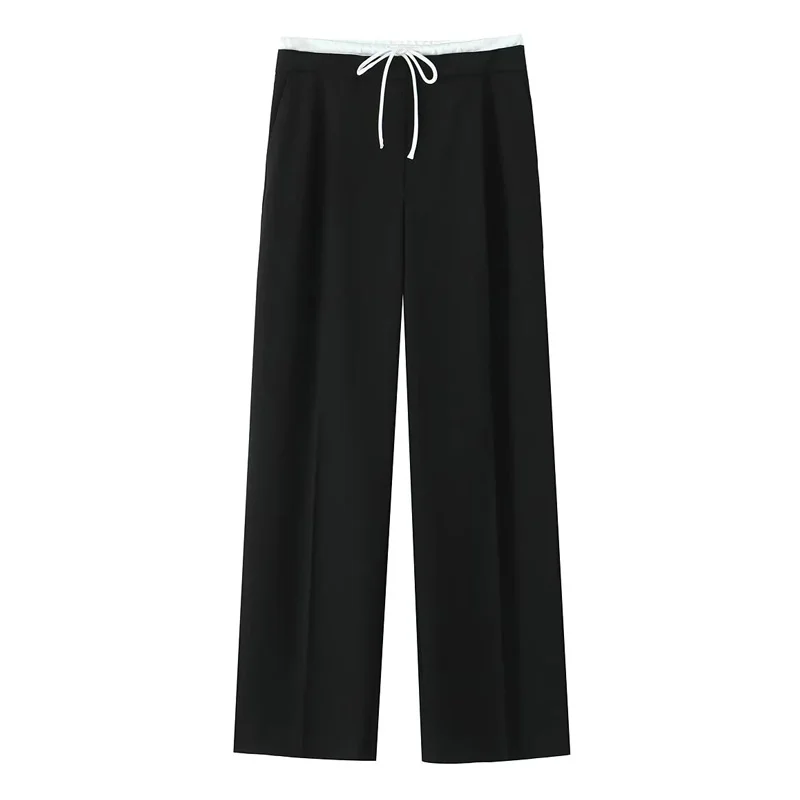 HXAO femmes pantalons été Baggy pantalon pour femme plis décontracté noir pantalon bureau à lacets fluide pantalon Boxer gris femmes pantalon