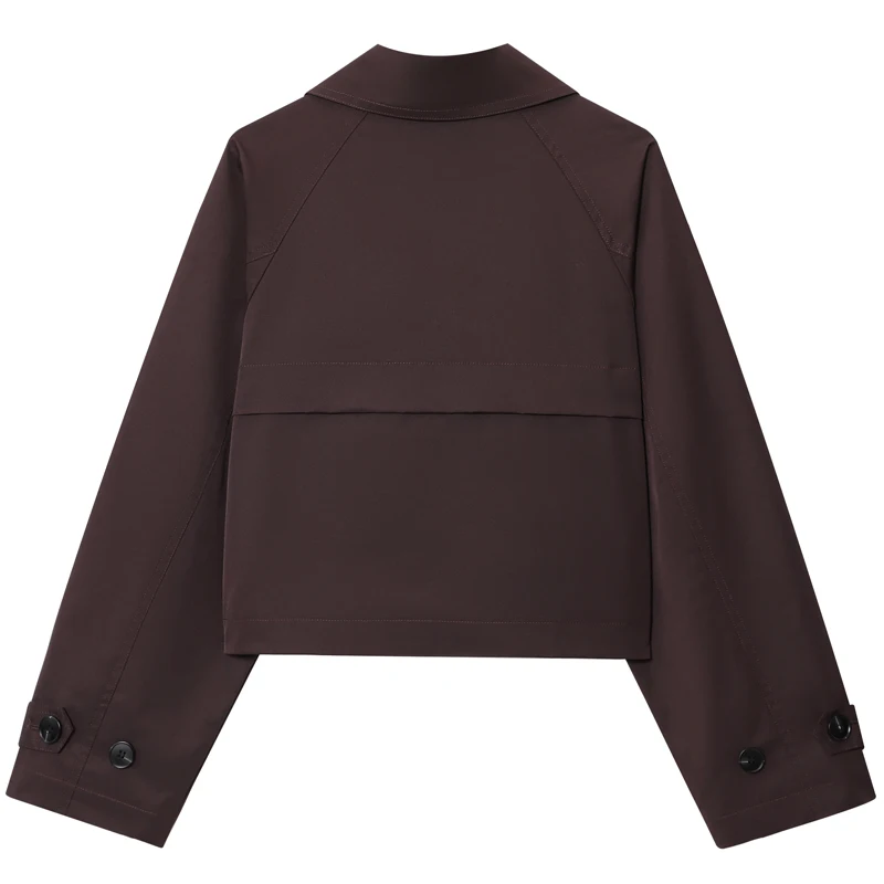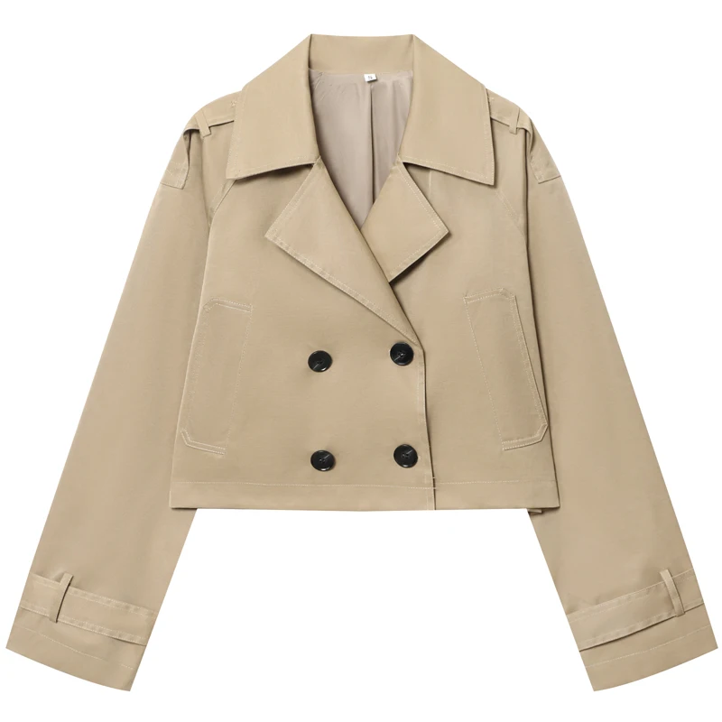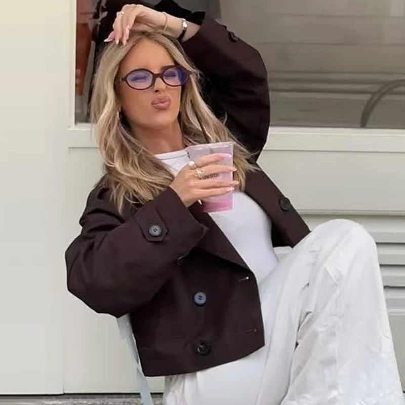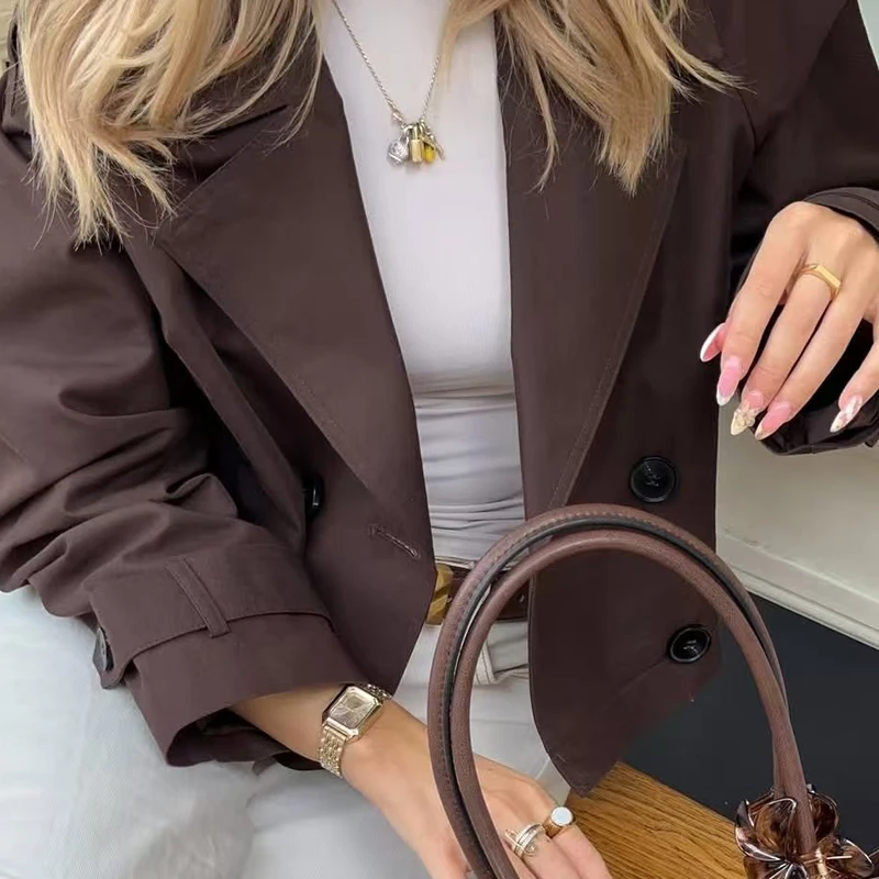 HXAO – Trench-Coat court marron chocolat pour femme, manteaux surdimensionnés à manches longues, veste à Double boutonnage, vêtements d'extérieur, automne