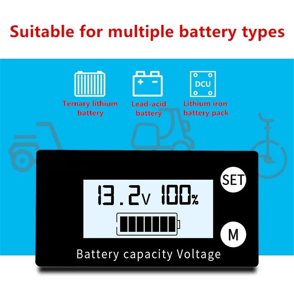 Indicateur de capacité de la batterie DC 8V-100V plomb-acide Lithium LiFe PO4 voiture moto voltmètre jauge de tension 12V 24V 48V 72V