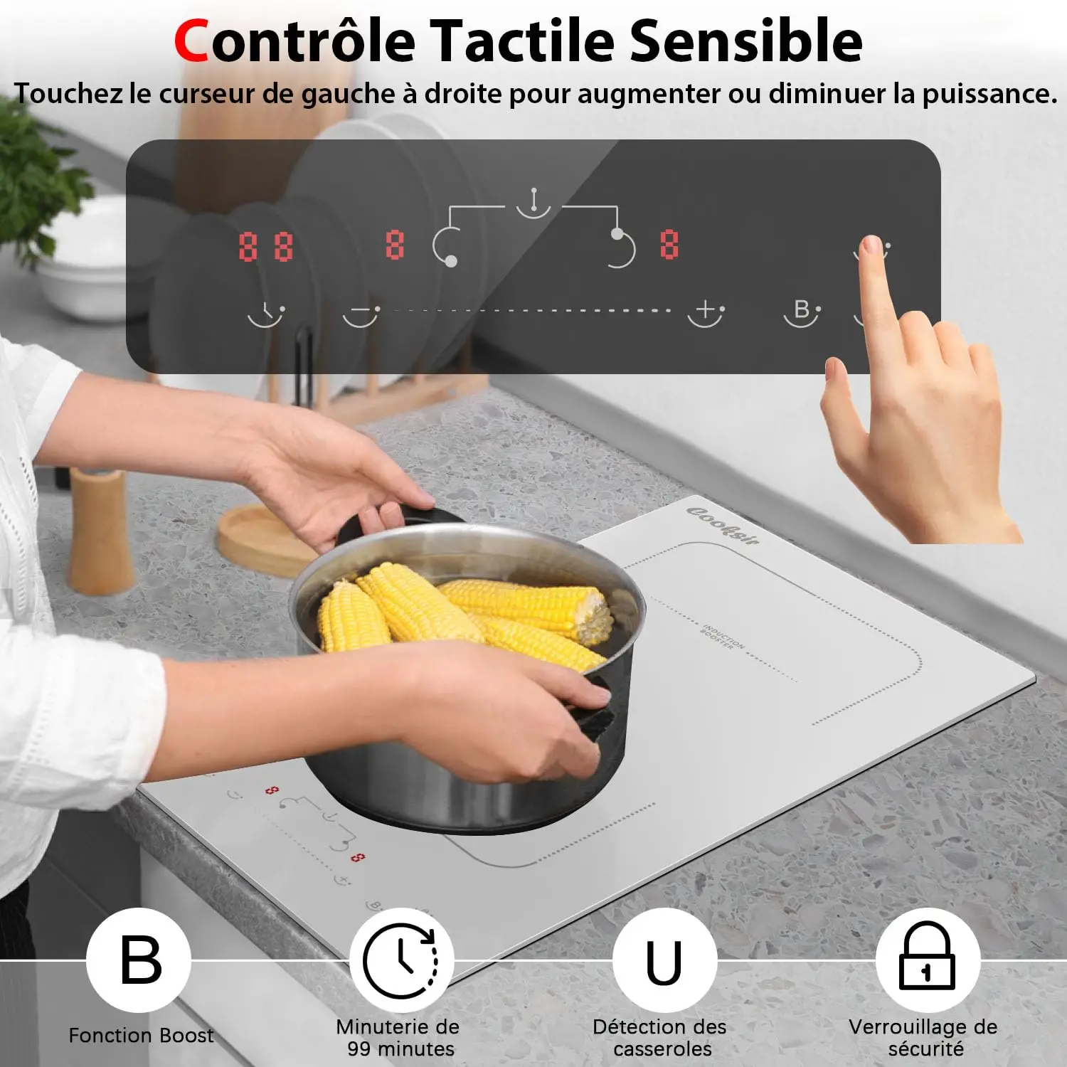 Catégorie du produit : Plaque Induction 2 Feux avec Prise (Verre Blanc)