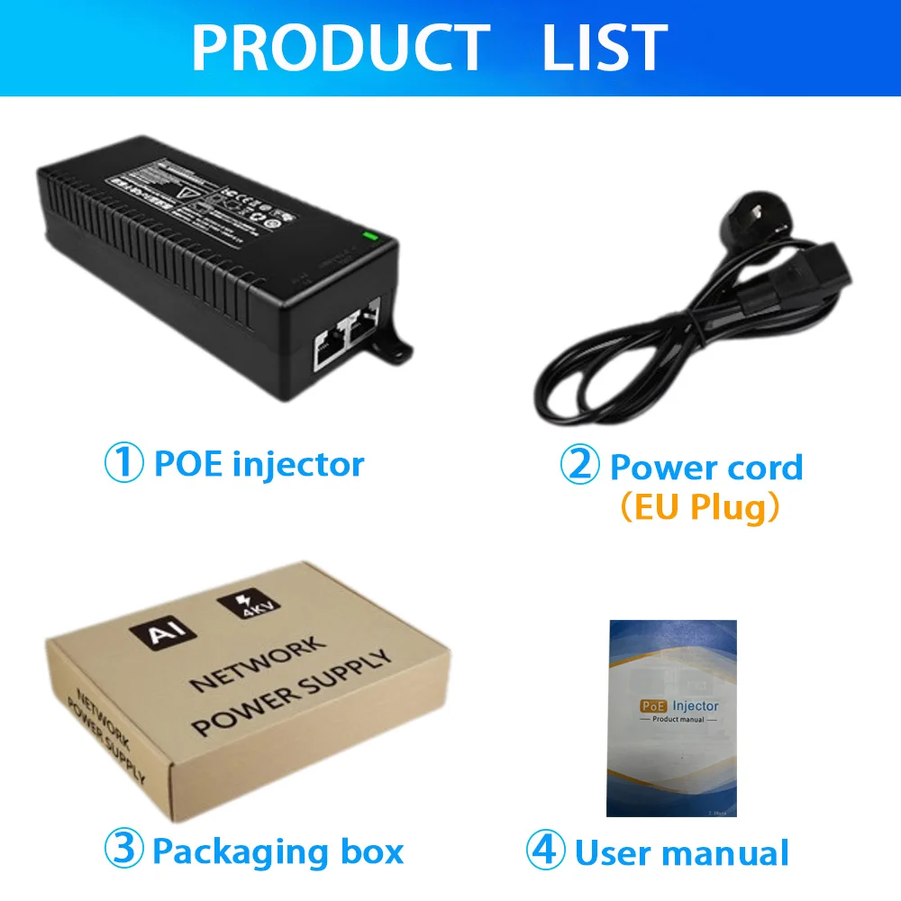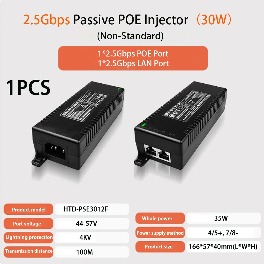 Remarque : la prise accessoire est de norme européenne par défaut, veuillez ne pas l'acheter si cela vous dérange. Vous avez le choix entre 15 modèles : Injecteur PoE actif (30 W) Injecteur POE 1.1000Mbps 30W (Standard) Injecteur POE 2.2.5Gbps 30W (Standard) Injecteur POE 3.10Gbps 30W (Standard) Injecteur PoE actif (60 W) Injecteur POE 4.1000 Mbps 60 W (Standard) Injecteur POE 5.2.5Gbps 60W (Standard) Injecteur POE 6,10 Gbps 60 W (Standard) Injecteur PoE actif (90 W) Injecteur POE 7.1000 Mbps 90 W (Standard) Injecteur PoE 8,2,5 Gbps 90 W (Standard) Injecteur POE 9,10 Gbps 90 W (Standard) Injecteur PoE passif (30 W) Injecteur POE 10.1000 Mbps 30 W (Non standard) Injecteur POE 11,2,5 Gbps 30 W (Non standard) Injecteur PoE passif (60 W) Injecteur POE 12.1000 Mbps 60 W (Non standard) Injecteur POE 13,2/5 Gbps 60 W (Non standard) Injecteur PoE passif (90 W) Injecteur POE 14.1000 Mbps 90 W (Non standard) Injecteur POE 15,2/5 Gbps 90 W (Non standard)