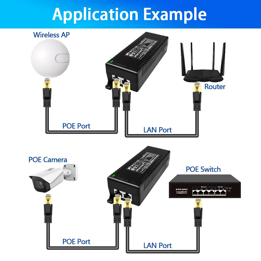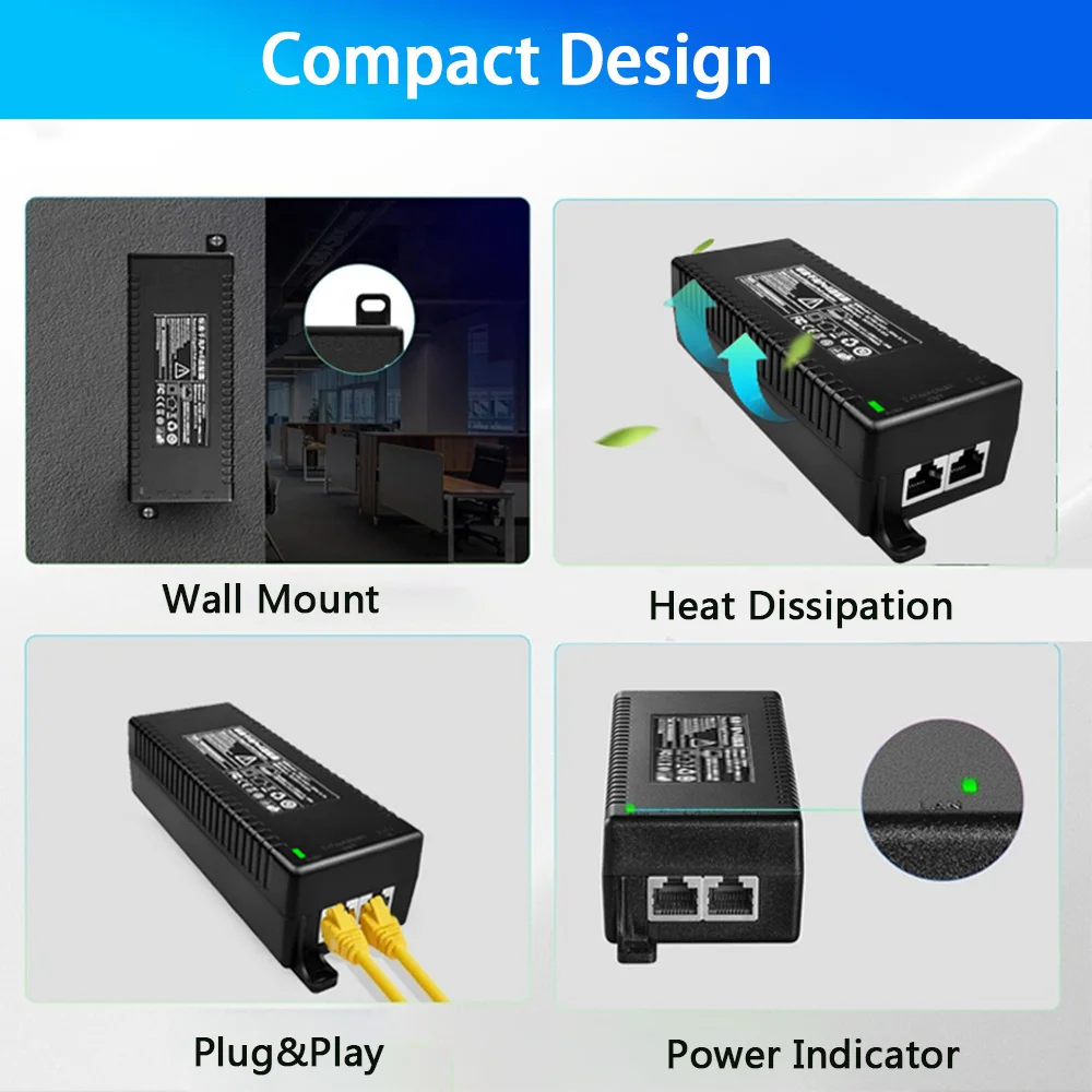Injecteur POE actif/passif 1000Mbps/2.5G/10G, adaptateur Ethernet haute puissance 30W/60W/90W pour caméras IP, routeurs, Points d'accès WiFi