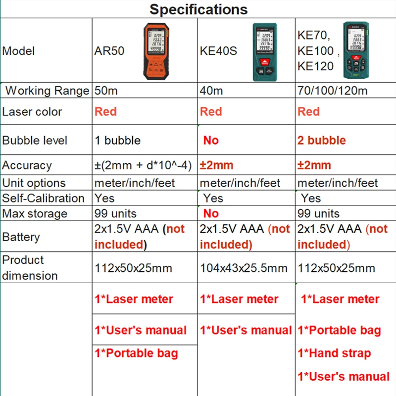 Remarque : veuillez utiliser des piles alcalines (AAA), afin que les performances du télémètre laser soient meilleures.
