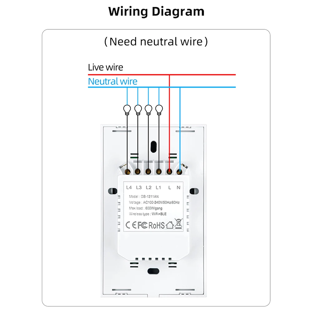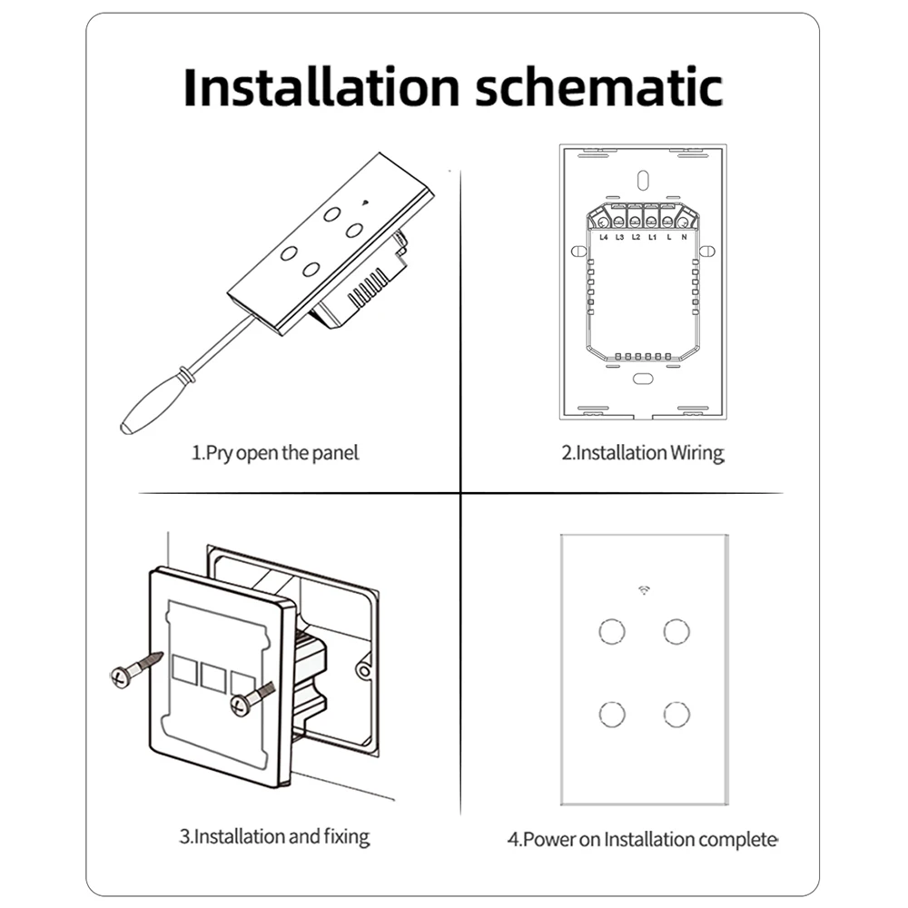 —Connecter les fils : En suivant le schéma de câblage anglais, connectez précisément les fils correspondants aux bornes du commutateur intelligent et serrez fermement ;