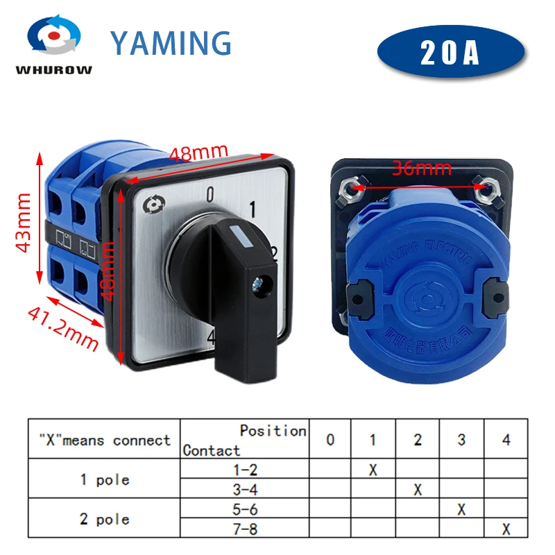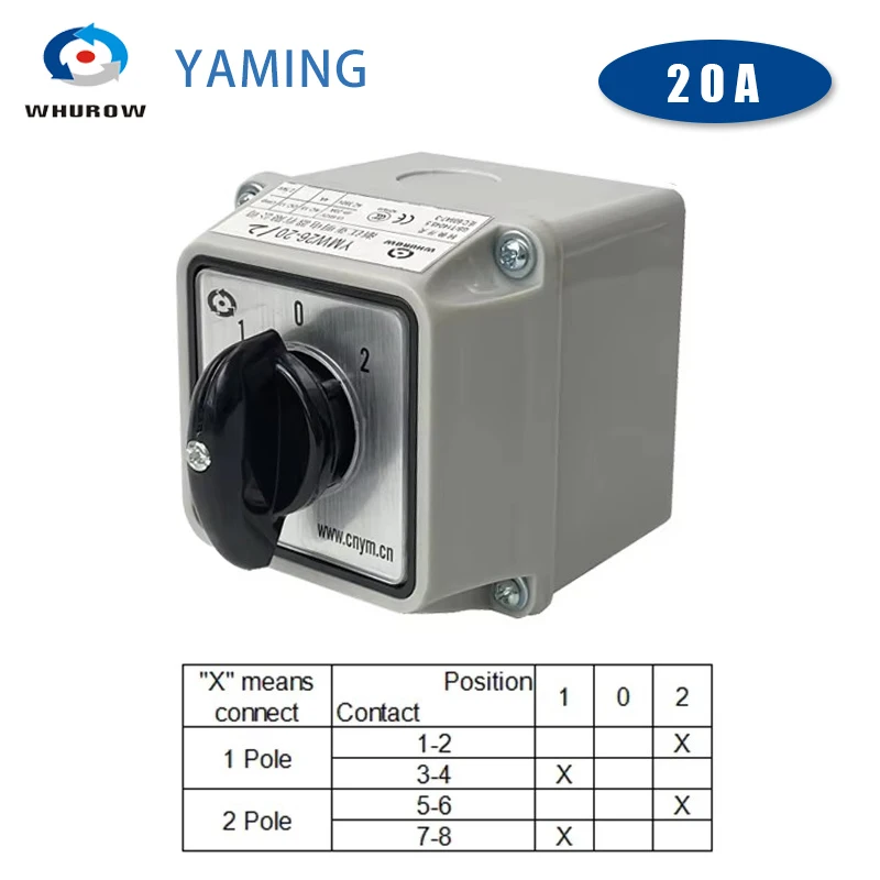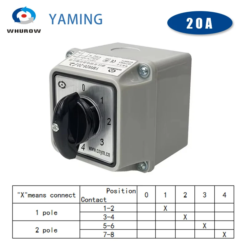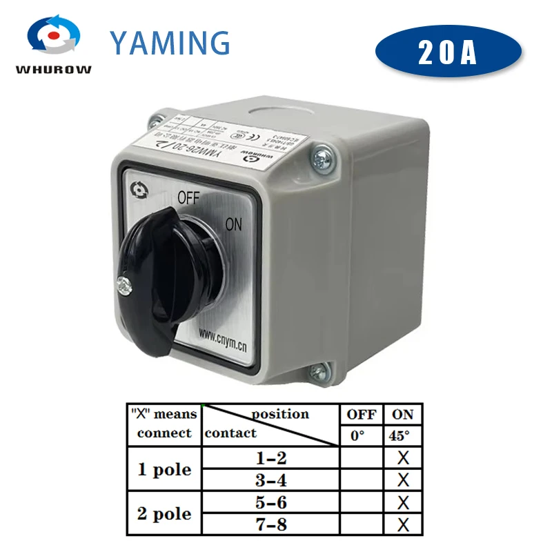 Interrupteur principal rotatif à came Yaming Electric LW26 YMW26-20/2M avec boîtier étanche IP65, 20A, 2 pôles