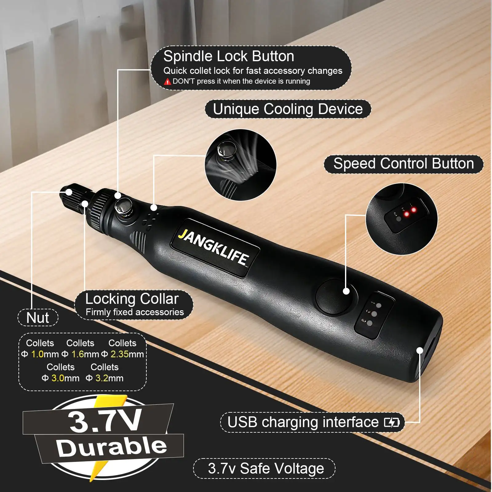 JANGKLIFE USB Kit d'outils rotatifs sans fil stylo de gravure sur bois bricolage pour bijoux métal verre Mini perceuse sans fil