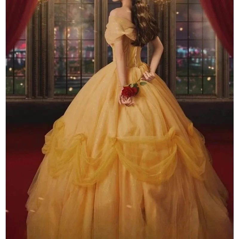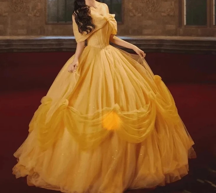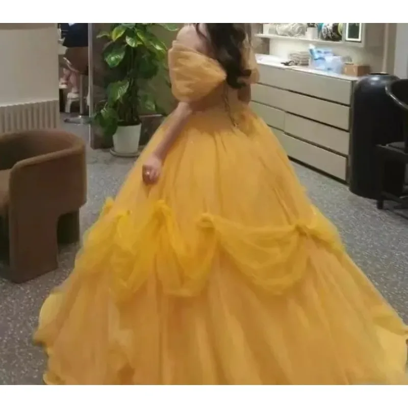 Cette robe de soirée jaune dégage du luxe avec son design haut de gamme, parfaite pour une apparence de princesse lors de tout mariage.