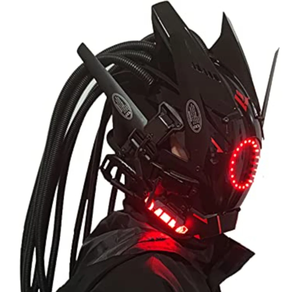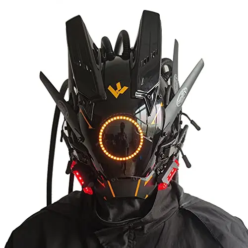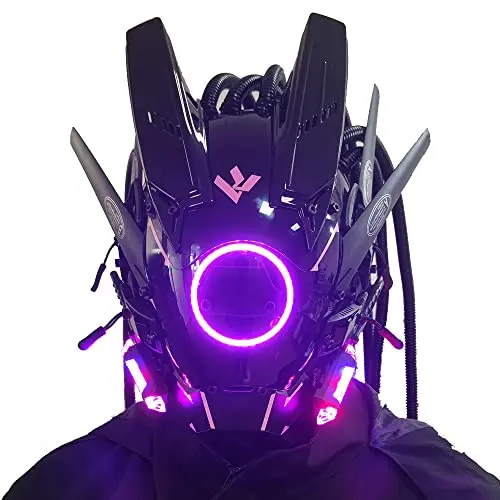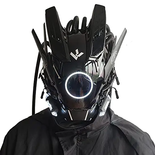 JAUPTO Cyberpunk masque lumières rondes avec masques tissés jeu de rôle Halloween adapté aux accessoires de festival de musique de fête
