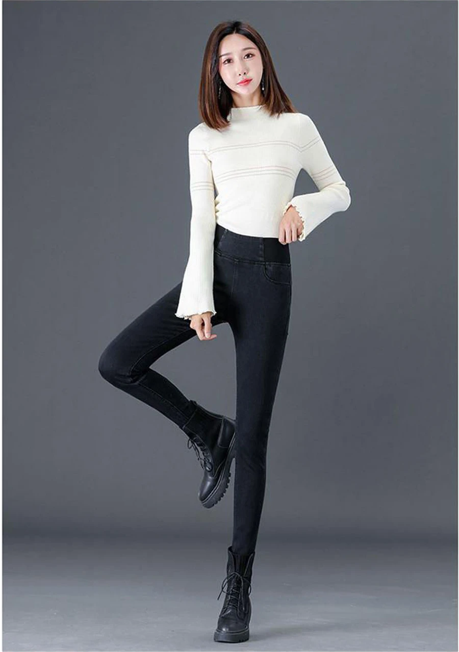 Jean crayon taille haute pour femme, pantalon skinny classique, pantalon en denim décontracté, streetwear, lavage commandé, grande taille 38, fjeros