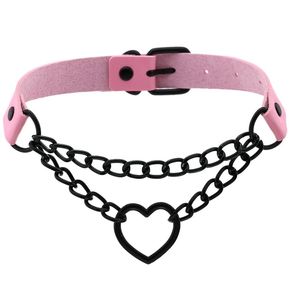 Jeu de rôle Vintage coeur collier ras du cou avec chaîne Goth collier pour filles Grunge Punk mignon Kawaii Egirl cosplay Chocker Harajuku