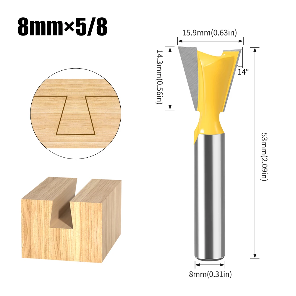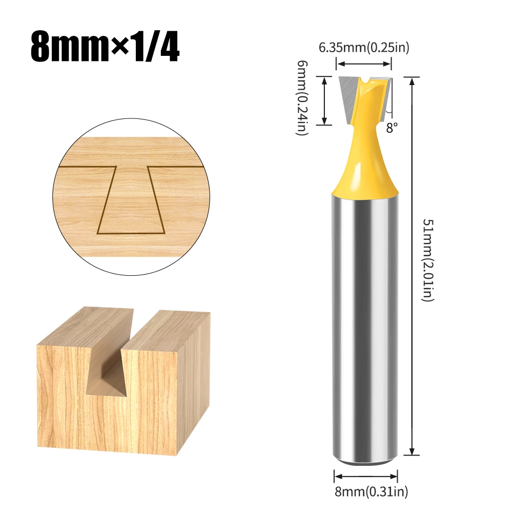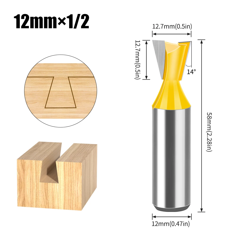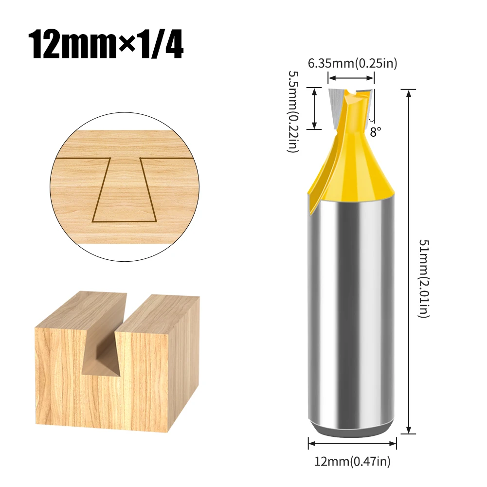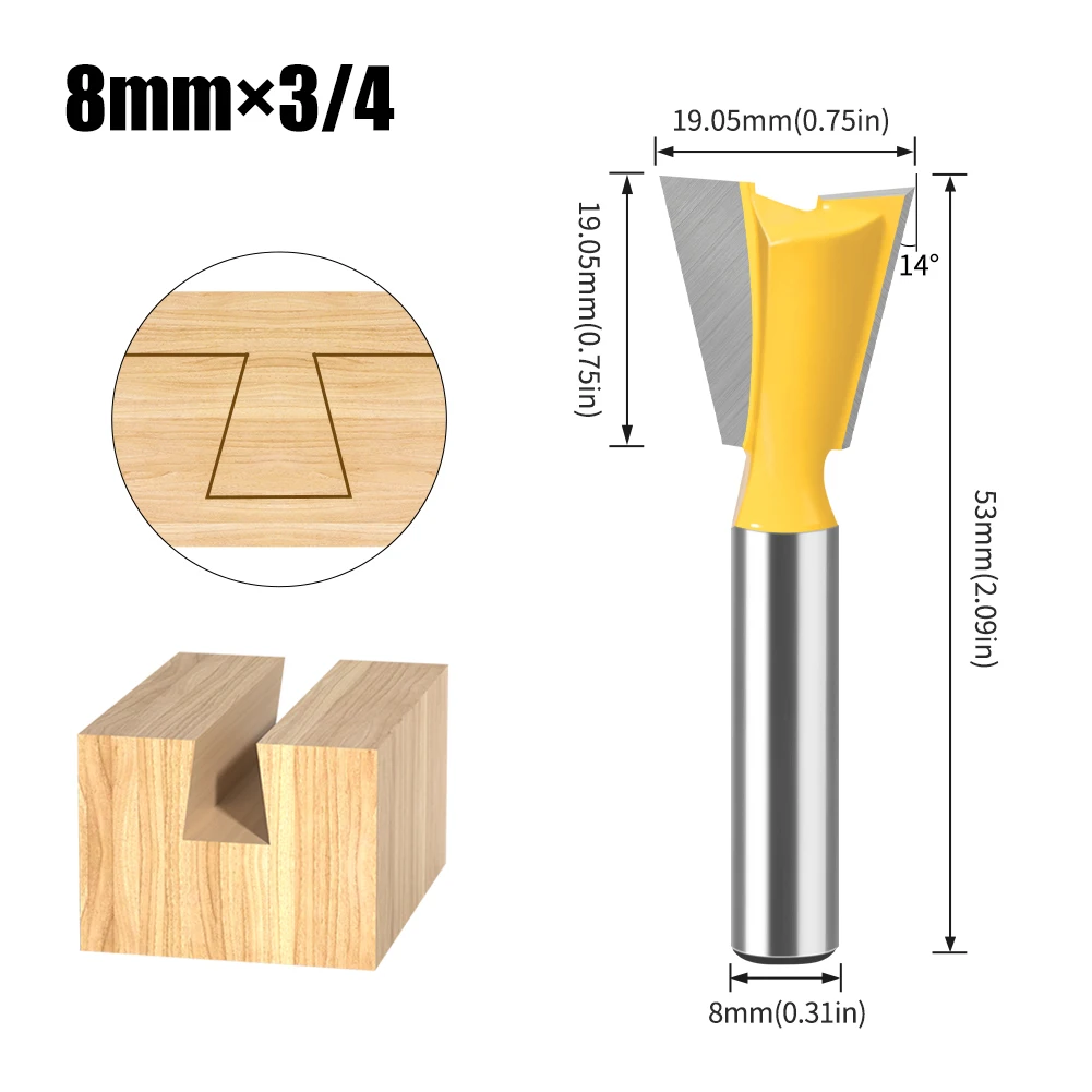 Jeu d'embouts de routeur à tige en queue d'aronde, 8mm 12mm, 14 degrés, pour le travail du bois, fraise pour le bois, 1 pièce