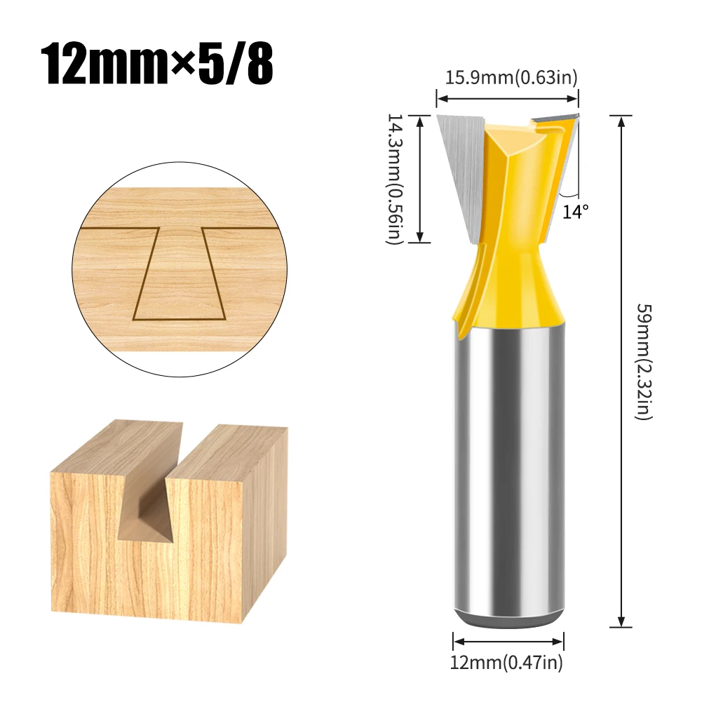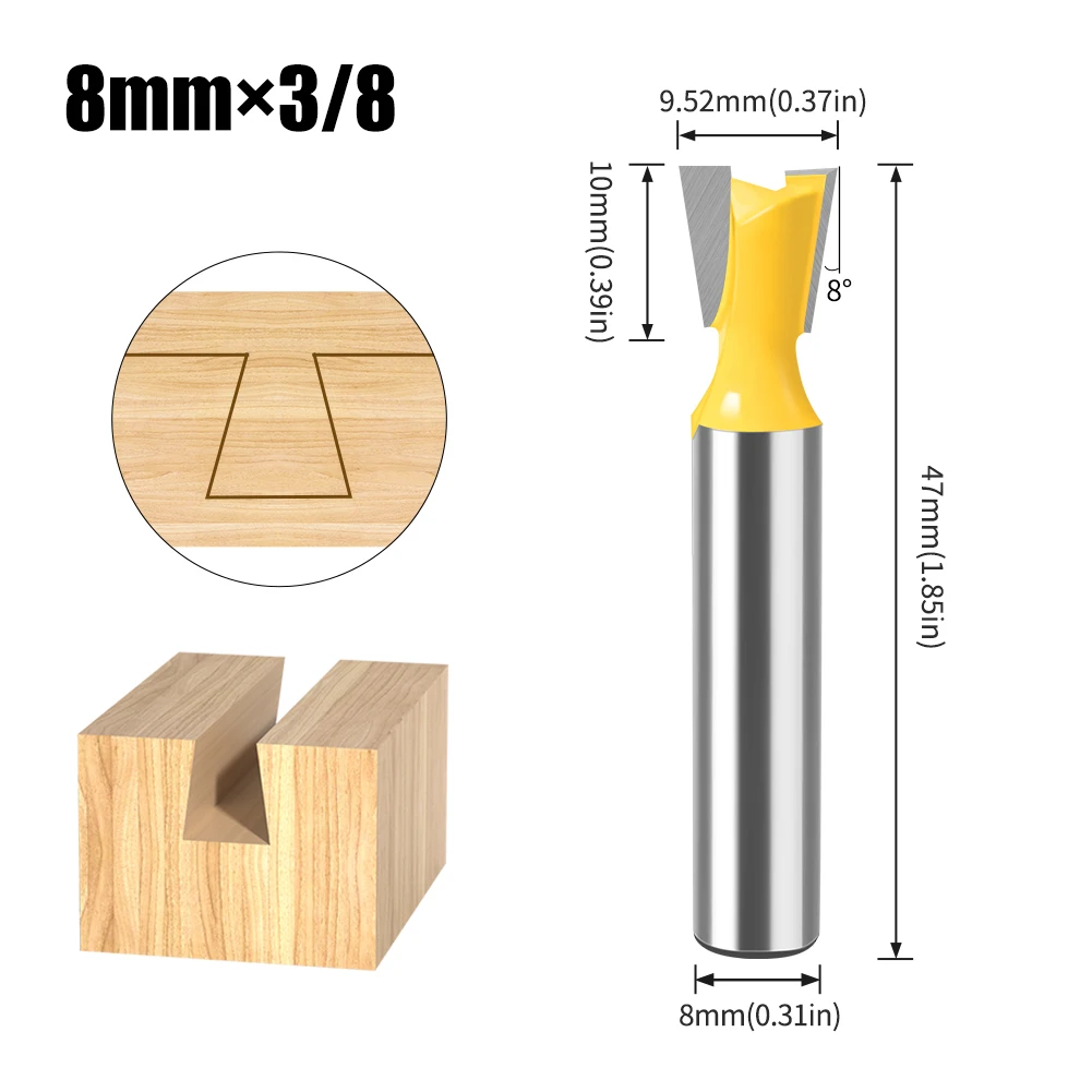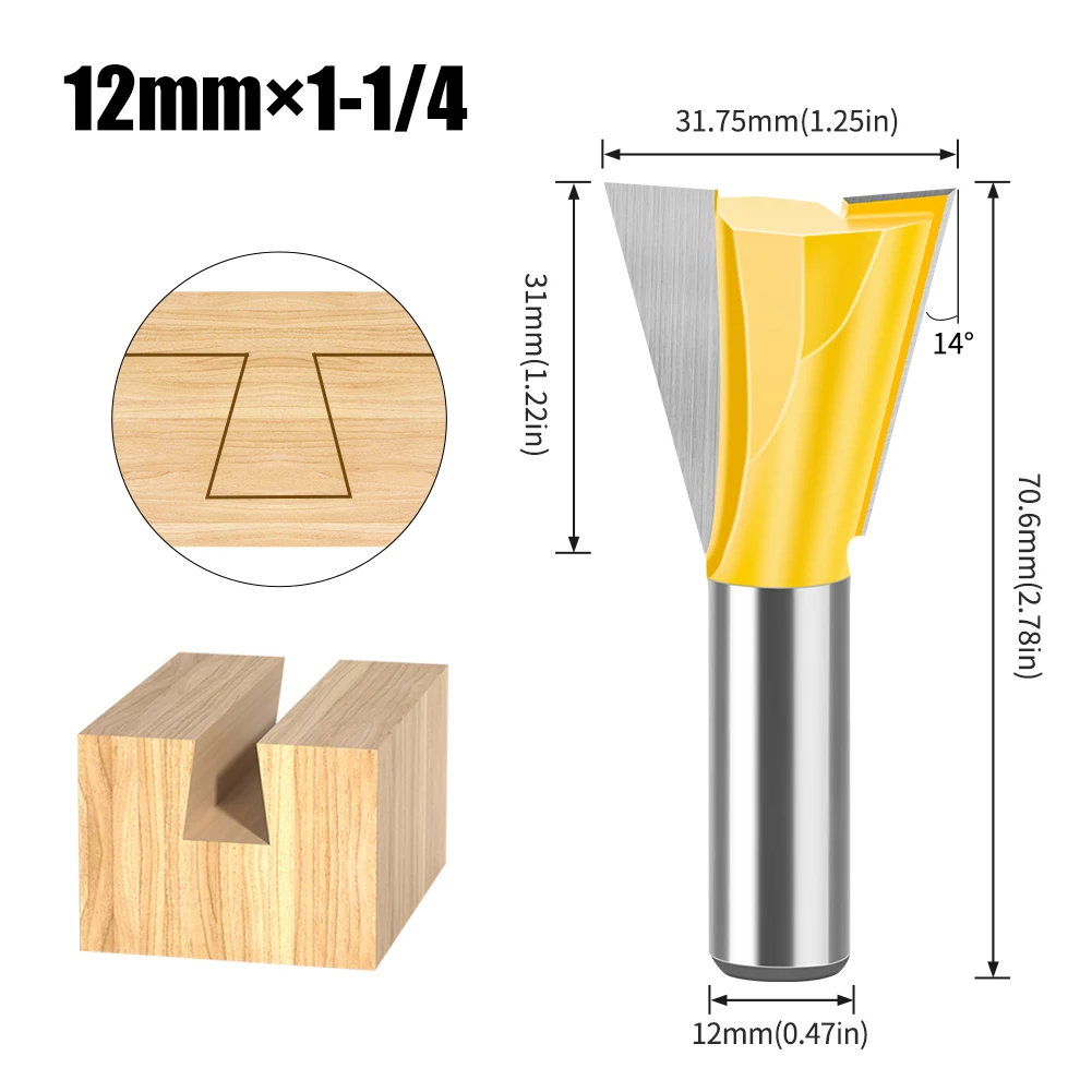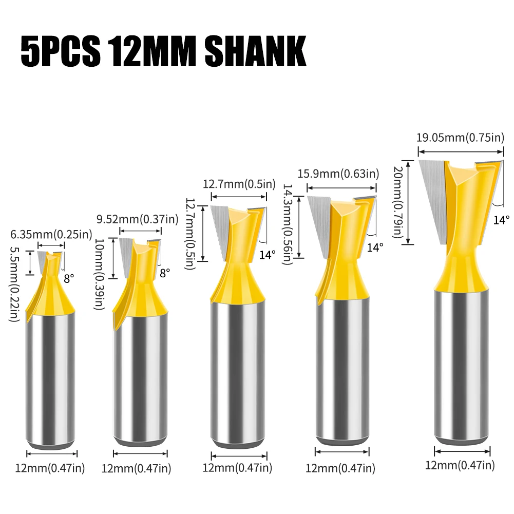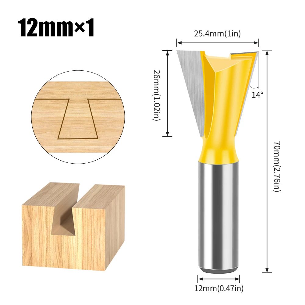 Jeu d'embouts de routeur à tige en queue d'aronde, 8mm 12mm, 14 degrés, pour le travail du bois, fraise pour le bois, 1 pièce