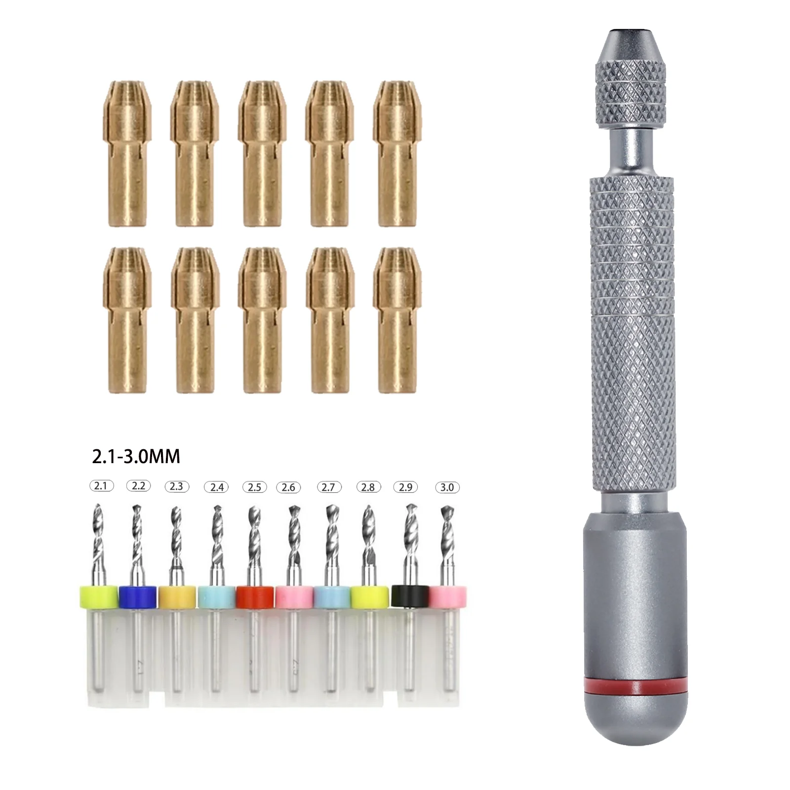 Le support de perceuse vous permet de modifier la capacité de serrage de la poignée et convient au serrage de tous les types de perceuses et est compatible avec la plupart des outils rotatifs utilisés dans les industries de la maison, du passe-temps et du matériel. Le foret inclus dans ce kit est un 3. Foret de taille 175, si vous souhaitez passer à un foret ou une perceuse de taille différente, il vous suffit de faire correspondre un mandrin de perçage de taille différente, le mandrin de perçage est disponible dans les tailles 0. 5, 0. 8, 1. 0, 1. 2, 1. 5, 1. 8, 2. 0, 2. 4, 3. 0, 3. 2, et peut s'adapter avec précision à la plupart des accessoires du marché!