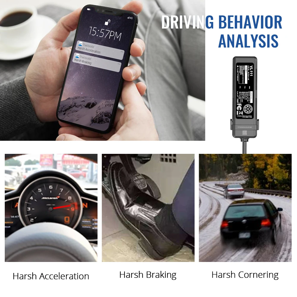 Notre nouveau mini traceur GPS Lte VL111 4G pour moto avec analyse du comportement de conduite pour une accélération dure, un freinage intense, des virages difficiles, une collision.