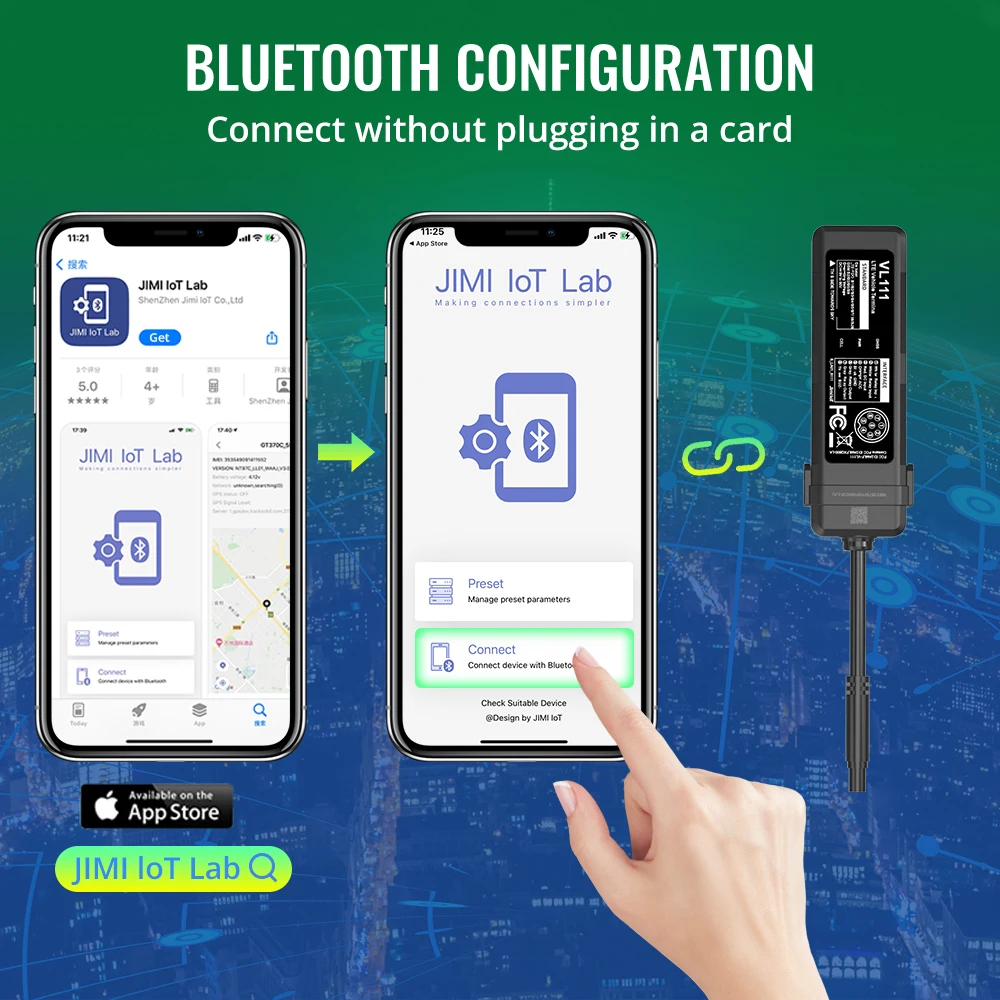 Le plus mini tracker VL111 4G pour moto, vous pouvez définir des paramètres comme APN, des alertes de vibration sans saisie de carte SIM 4G à l'avance.