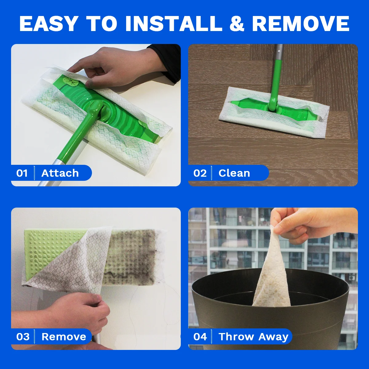 1.Compatible avec la plupart des vadrouilles de sol pivotantes plates pour Swiffer, Pledge, Grab-it, Clorox, Ready Mop, etc.