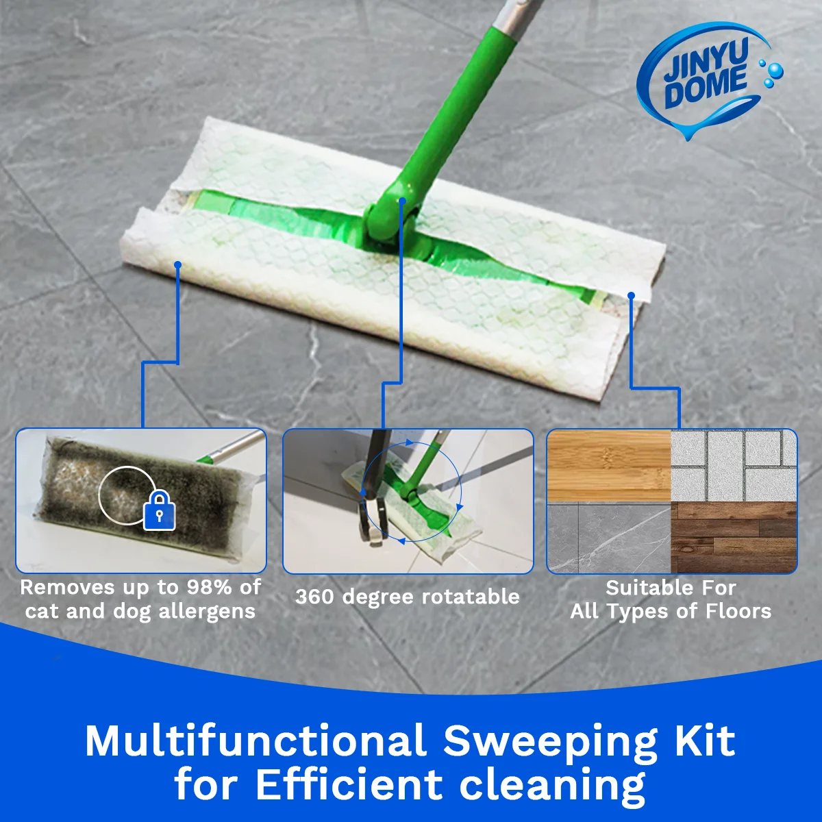 3.Non-tissés non parfumés et électrostatiques.gagne une charge négative due au frottement avec le sol. Le motif en losange texturé en profondeur bloque la saleté, la poussière et les cheveux pour garder vos sols propres et exempts de débris.