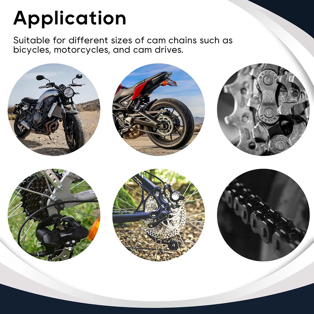 1. Pratique: utilisez l'outil Chain Breaker 13 pièces avec étui de transport-Chain Breaker et riveteuse pour motos, vélos, VTT pour retirer et réinstaller moto/vélo, entranement de roue arrière et chanes de came de #35 à #630; l'outil complet pousse ouvrir les goupilles de maillon de chane