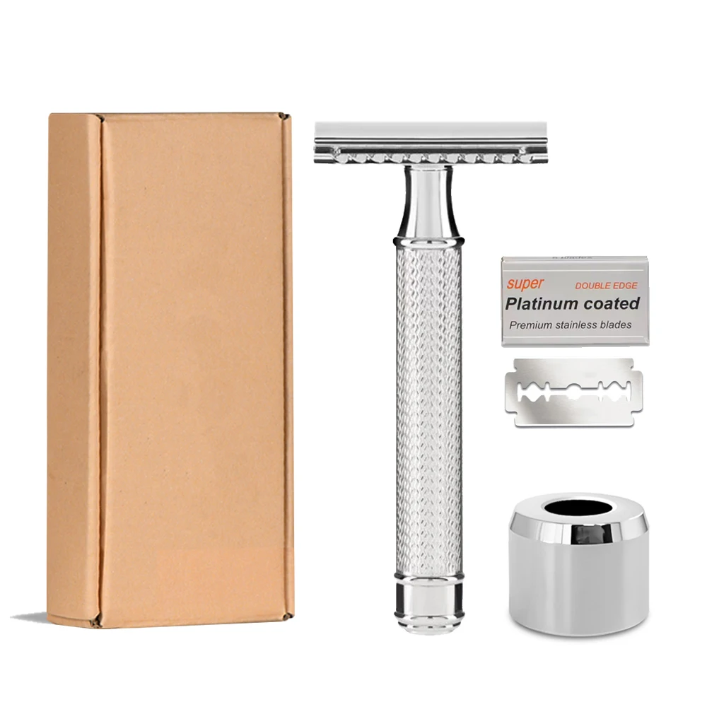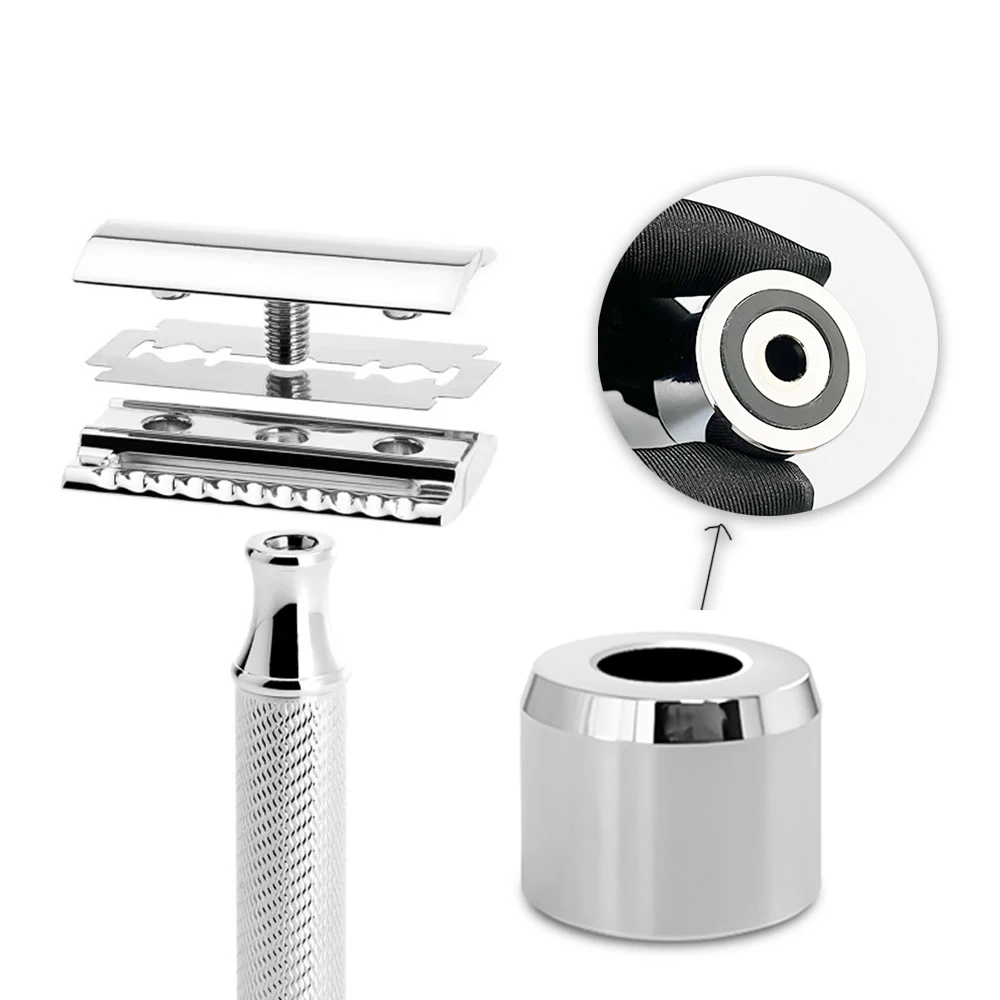 JOKMAE 07TS rasoir de sécurité en acier inoxydable pour homme avec support Double lame support Base rasoir sûr Machine à raser pour hommes
