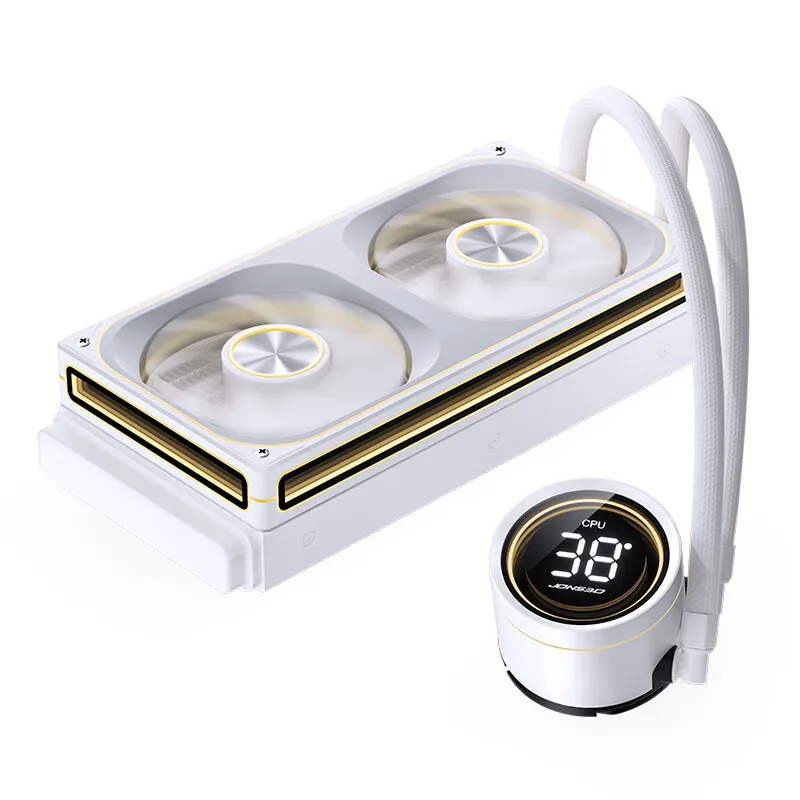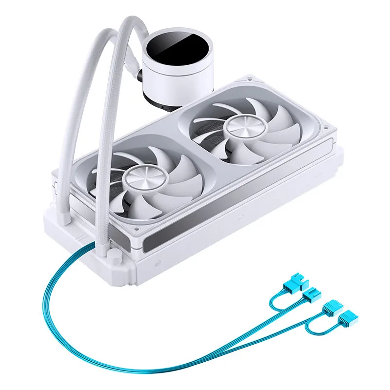 Taille du produit : pompe à eau : 72 mm * 85,3 mm * 57,5 mm ; Dissipateur thermique : 277 mm * 120 mm * 27 mm ; Ventilateur : 243 mm * 123 mm * 28 mm