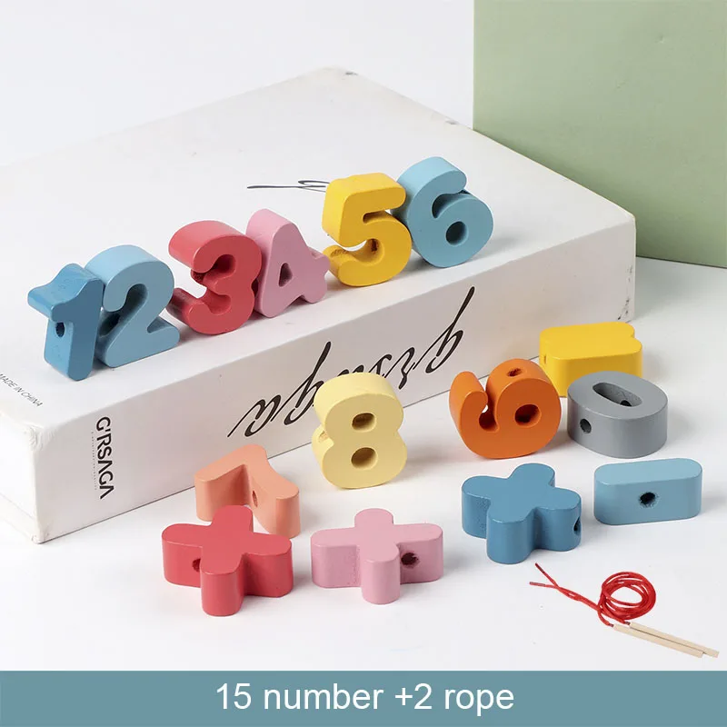 Jouets de laçage en bois Montessori pour enfants, perles en bois à faire soi-même pour enfants, animaux de dessin animé, lettre de fruits, perles numériques, jouets à enfiler, cadeaux