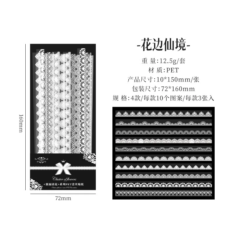 Journamm 30 pièces/paquet PET dentelle Style décor autocollants Collage indésirable Journal bricolage Scrapbooking auto-adhésif créatif artisanat autocollants