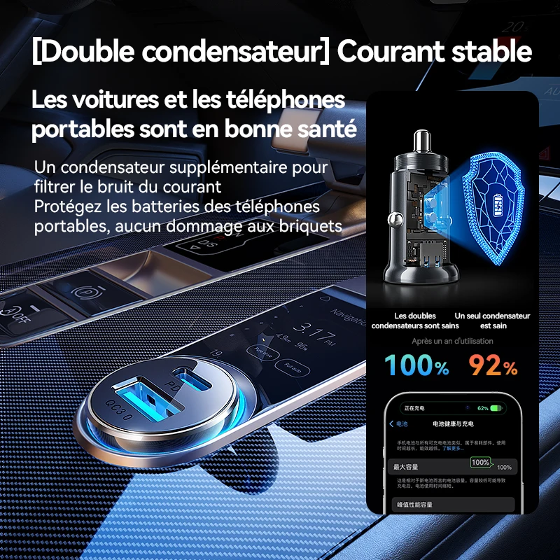 2. Mini taille, 50% plus petit que les chargeurs de voiture ordinaires