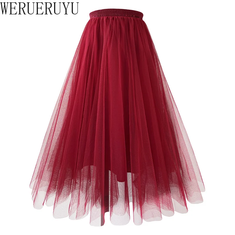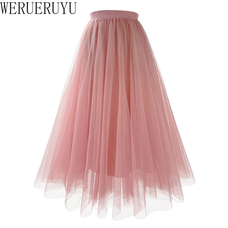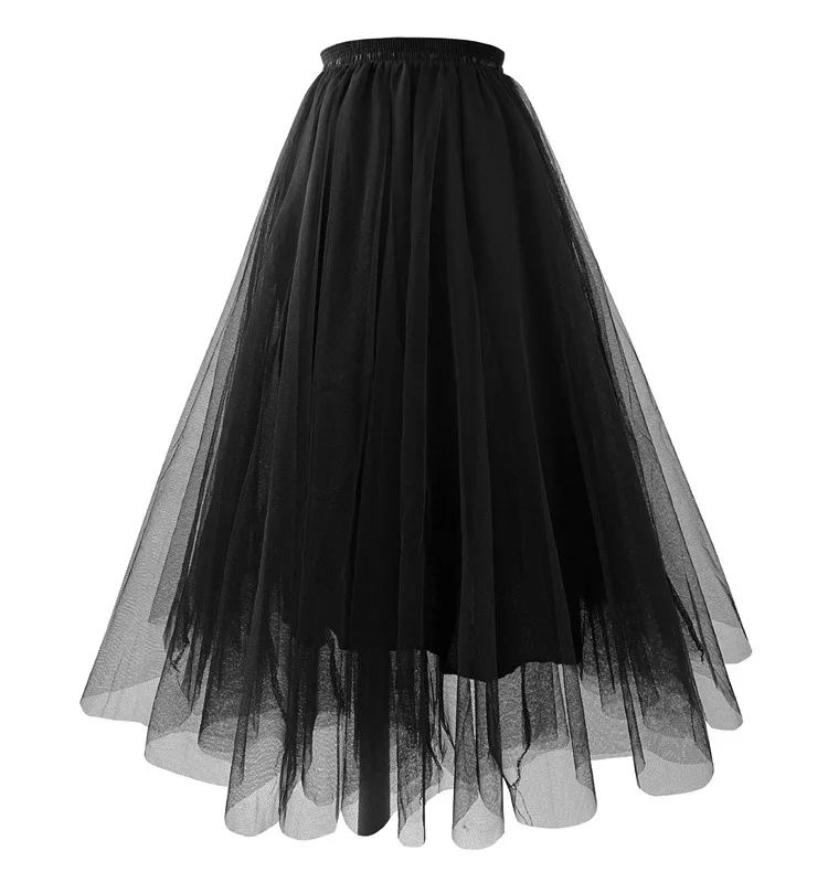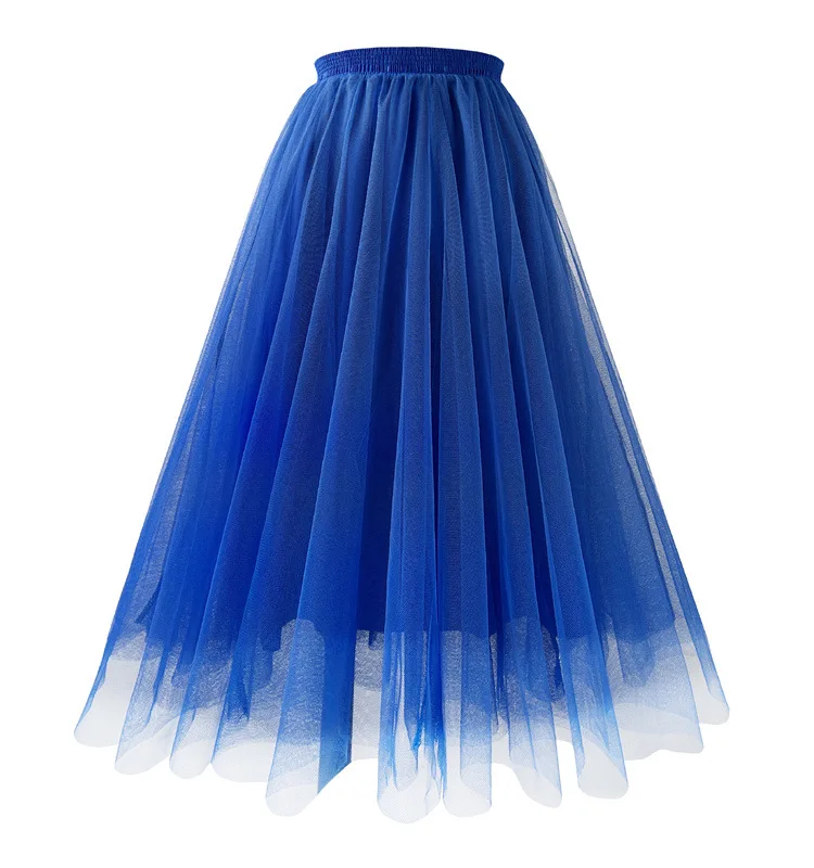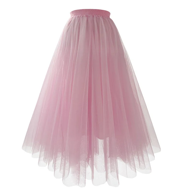 Jupe trapèze plissée en gaze de maille, vêtements de bal Kawaii pour femmes, taille haute, rose, blanc, bleu, jupe mi-longue en Tulle, nouvelle collection été 2023