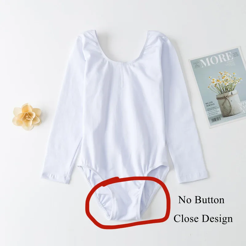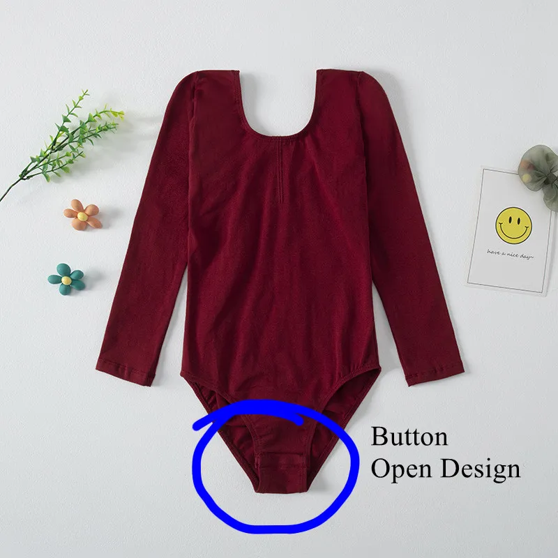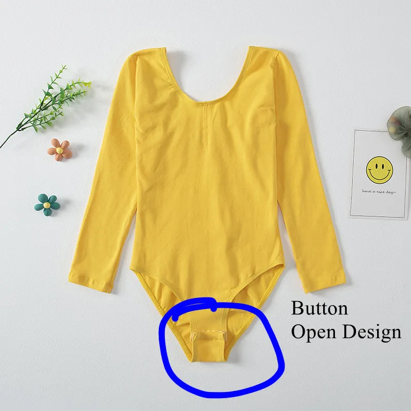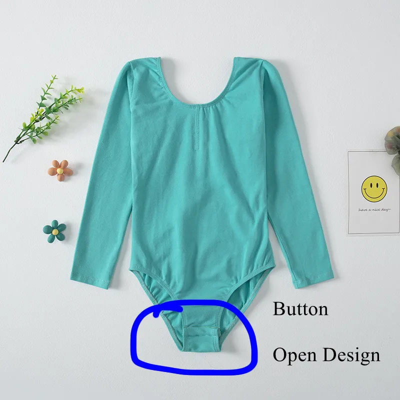 Girls long sleeve leotard, high quality combed cotton, soft and breathable