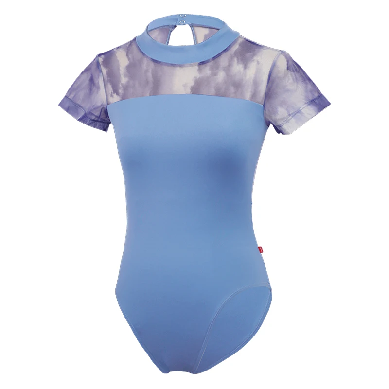 Justaucorps de ballet femme justaucorps de danse Nylon col montant cravate teinture épissure manches courtes gymnastique justaucorps danse body adultes
