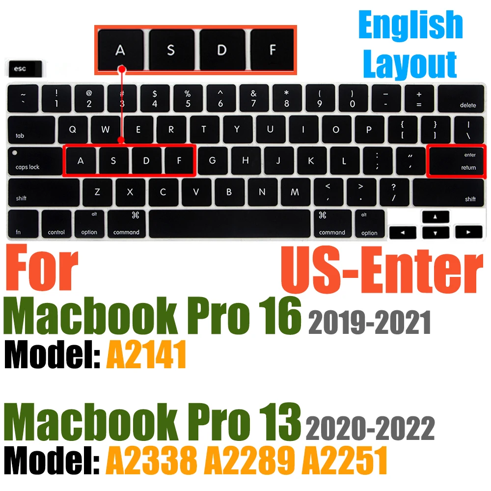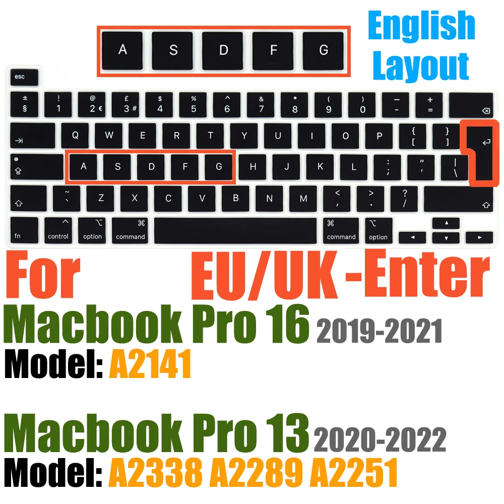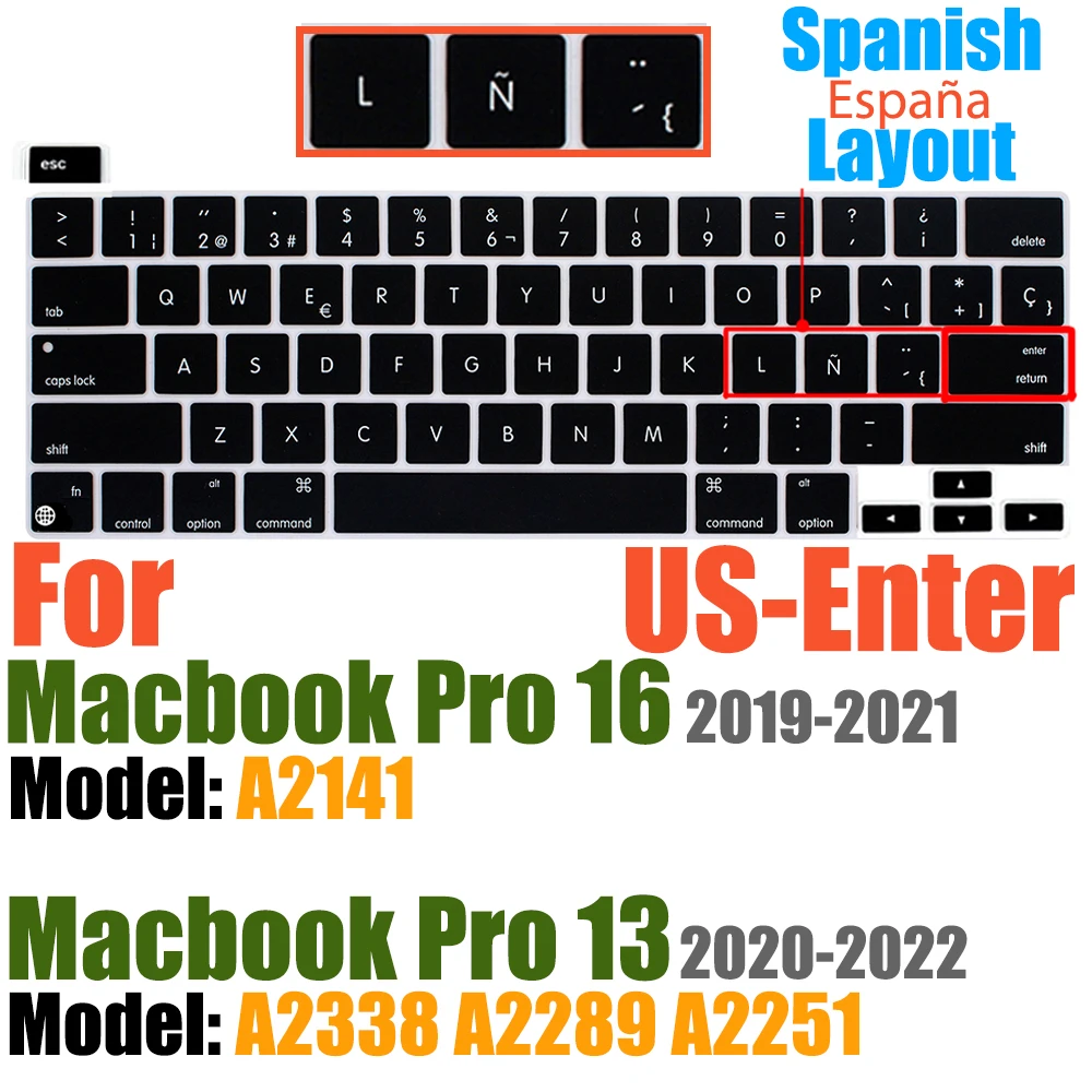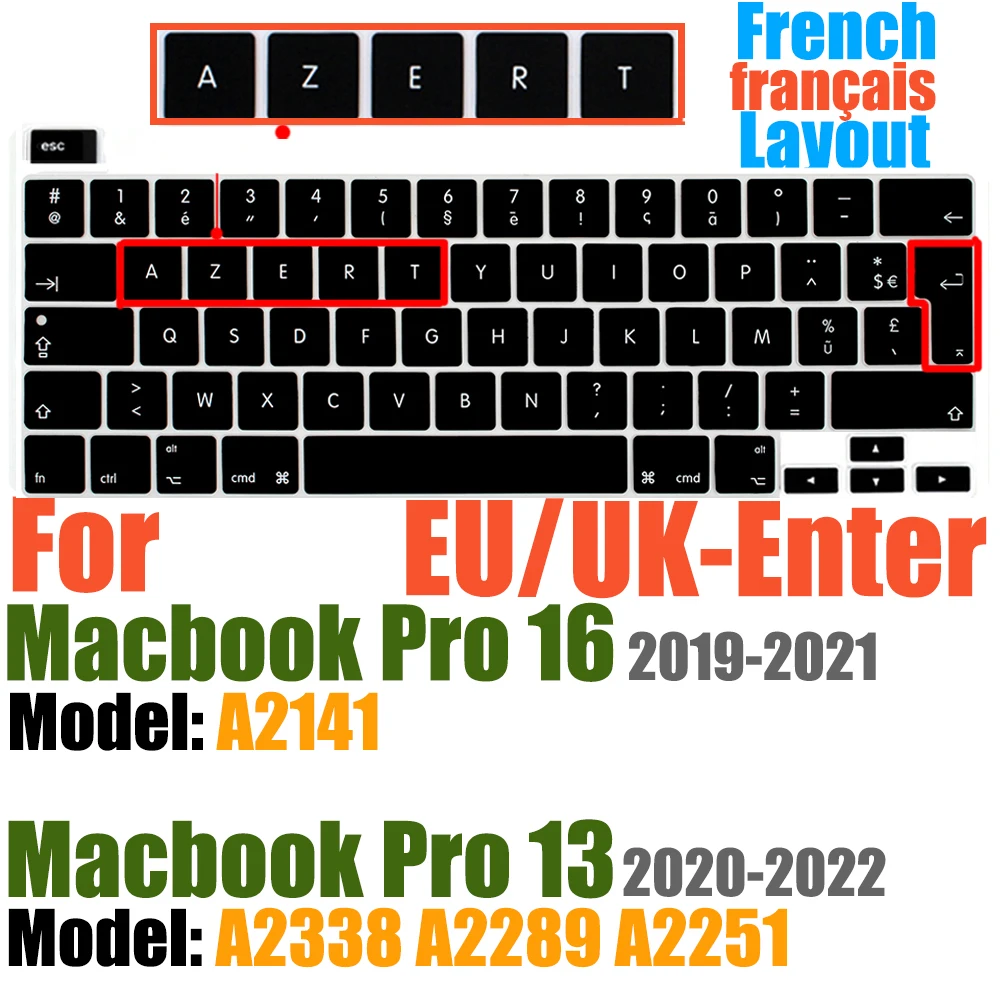 Compatible avec Macbook Pro 13 pouces Modèle A2289/M1 A2338/A2251 2020/2021/2022/2023/2024 Nouvelle Version et MacBook Pro 16 pouces Modèle A2141 2019/2020/2021-Première Version avec Touch Bar Touch ID Retina Display US/EU Disposition Non compatible avec MacBook autre modèle, tels que le Macbook Pro 2010-2019 13 pouces modèle A1706/A1708/A2159/A1989/A1502/A1425/A1278. Macbook Pro 16 pouces Modèle A2485 A2780 A2991 2021/2022/2023/2024. Veuillez vérifier le numéro de modèle de votre MacBook "Axxxx" sur le bas de l'ordinateur portable pour déterminer la compatibilité.