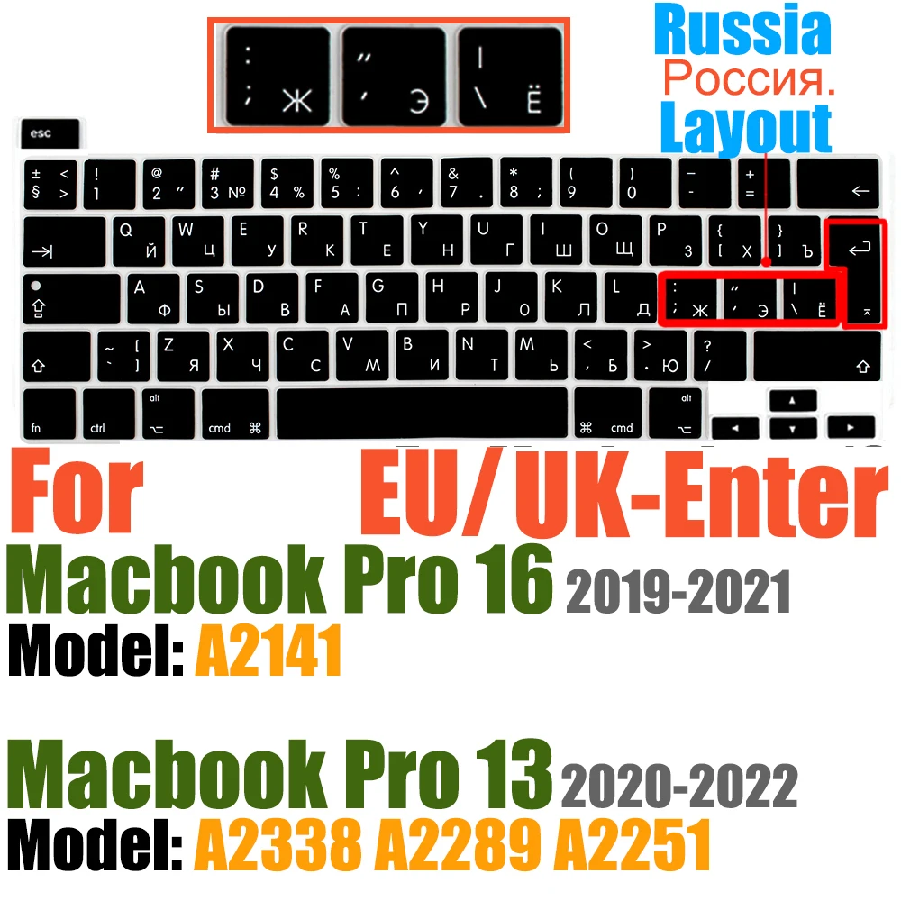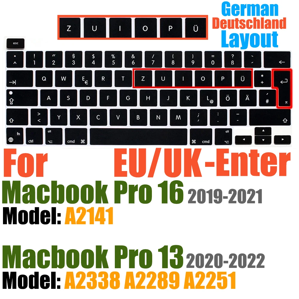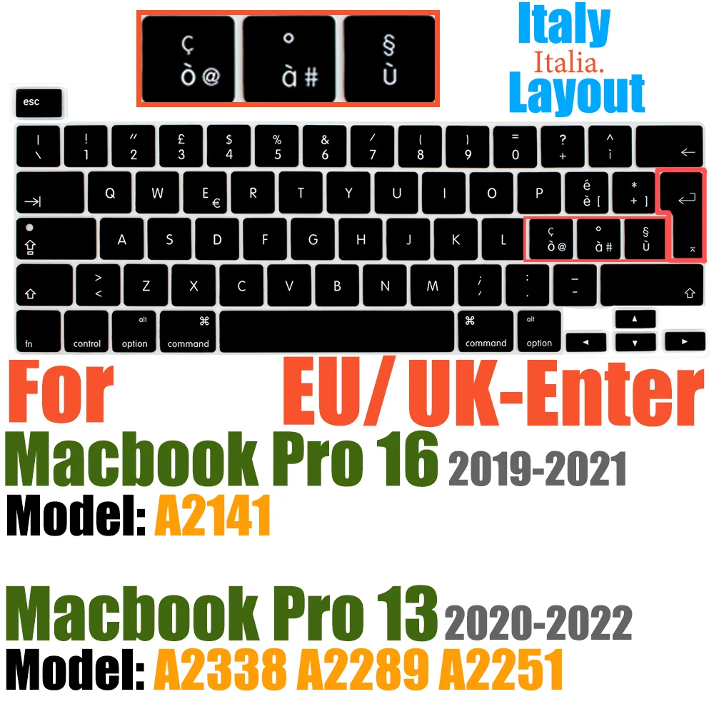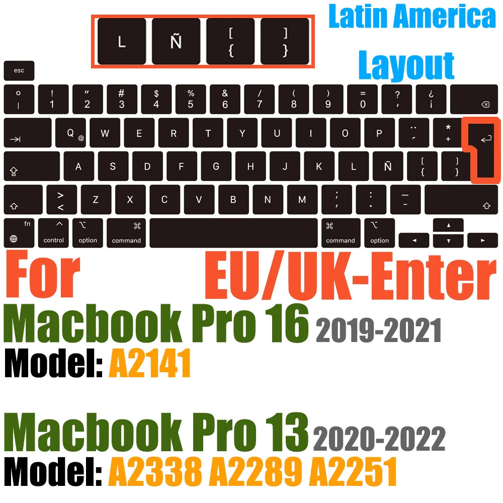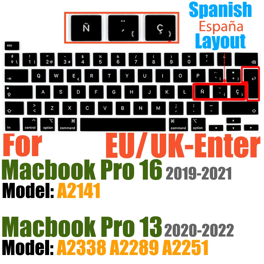 Compatible avec Macbook Pro 13 pouces Modèle A2289/M1 A2338/A2251 2020/2021/2022/2023/2024 Nouvelle Version et MacBook Pro 16 pouces Modèle A2141 2019/2020/2021-Première Version avec Touch Bar Touch ID Retina Display US/EU Disposition Non compatible avec MacBook autre modèle, tels que le Macbook Pro 2010-2019 13 pouces modèle A1706/A1708/A2159/A1989/A1502/A1425/A1278. Macbook Pro 16 pouces Modèle A2485 A2780 A2991 2021/2022/2023/2024. Veuillez vérifier le numéro de modèle de votre MacBook "Axxxx" sur le bas de l'ordinateur portable pour déterminer la compatibilité.