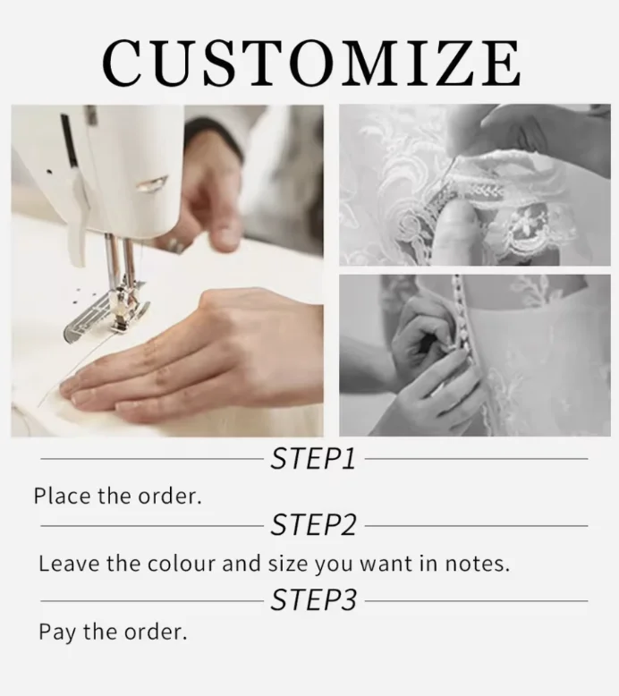Veuillez noter que ce produit est un article personnalisé, la politique de retour diffère de celle des produits réguliers, il n'est pas éligible au retour sans raison.Avant de faire votre achat, nous vous encourageons à contacter le vendeur pour plus de détails. Bienvenue dans le magasin de robes de mariée Mengya Meng, meilleur fabricant 1.Meilleur prix : tissu de qualité supérieure, savoir-faire personnalisé avancé, mesures précises et système de contrôle qualité complet. 2.Service sur mesure : toutes nos robes sont fabriquées sur commande et peuvent être personnalisées et modifiées selon vos demandes. 3.Livraison dans les délais - Expédition environ 7 à 10 jours ouvrables après la confirmation de la commande. 4.Une commande urgente est disponible, veuillez contacter le vendeur pour plus de détails. 5. Ce produit est un article personnalisé, qui n'est pas éligible pour un retour sans raison. Remarques : A.Le produit ne comprend aucun accessoire tel que des gants, un voile de mariée ou un jupon, le prix est pour une seule robe. B.Principalement influencé par divers facteurs, tels que les compétences de couture de différents tailleurs, les conditions d'éclairage pendant la prise de vue, les angles de prise de vue et les différents affichages électroniques, etc., les robes que vous recevez peuvent présenter de légères différences par rapport aux images ci-dessus.Veuillez comprendre qu'il s'agit d'un phénomène normal. C. Avant de commander, veuillez lire attentivement cette annonce et poser toutes vos questions.Nous vous répondrons dans les plus brefs délais. D. Nous vous recommandons fortement de faire prendre vos mesures par un professionnel avant d'acheter une robe en ligne.Veuillez vous référer aux instructions de mesure et mesurez-vous soigneusement. E. La robe peut être confectionnée dans une taille, une couleur et un design personnalisés. F. Toutes les robes ne sont pas en stock, la production commence une fois la commande confirmée. Si vous avez besoin de personnaliser la robe, veuillez nous proposer les mesures ci-dessous, assurez-vous que la robe vous ira très bien. Merci 1. Buste = ___ cm/pouce 2. Taille = ___ cm/pouce 3. Hanches = ___ cm/pouce 4. Creux à l'ourlet avec des chaussures = ___ cm/pouce 5. Hauteur = ___ cm/pouce (du haut de la tête au sol sans chaussures) 7.paule à épaule = ___ cm/pouce 8. Couleur de la robe = ___ (n'importe quelle couleur à choisir parmi notre nuancier ou la couleur de l'image) 9. Dos de la robe = lacets ou fermeture éclair Veuillez lire attentivement les notes ci-dessous avant de passer votre commande.Si vous avez des questions, n'hésitez pas à nous contacter. Veuillez noter : 1 La taille et la couleur sont très importantes pour la robe, donc lorsque vous choisissez la couleur et la taille, veuillez faire le choix comme notre nuancier et notre tableau des tailles, car la taille peut être légèrement différente selon votre pays. 2. Si vous postez au BRSIL, veuillez nous indiquer le CPF du destinataire dans la bote de message, sans celui-ci, nous ne pouvons pas poster la robe. Si vous êtes la personne au Brésil, veuillez en tenir compte. Dans votre pays, il est très difficile de passer la douane, nous envoyons donc généralement la robe par China Post Air (25-30 jours), et cette méthode d'expédition est la plus facile pour dédouaner. 1.Pourquoi nous choisir -----Nous sommes une usine de vêtements professionnelle engagée dans cette ligne depuis plus de 14 ans qui accorde beaucoup d'attention à la qualité des robes et a des prix compétitifs. nous avons notre propre usine pour nous assurer que la production est livrée à temps 2.Comment passer commande? -----Choisissez le design -- détails confirmés avec le service commercial --- paiement effectué --- production commencée --- 3. Délai de production et délai d'expédition? -----En général, notre délai de production est de 5 à 7 jours, commande accélérée de 3 à 5 jours.Lorsque vous passez commande, vous pouvez vérifier le délai total d'expédition. 4.Peut-on faire une alternance sur le design original? ----- Frais gratuits pour les petites alternances, telles que l'ajout de bretelles, l'ajout de manches, etc. mais toutes les demandes doivent être vérifiées avant la production.
